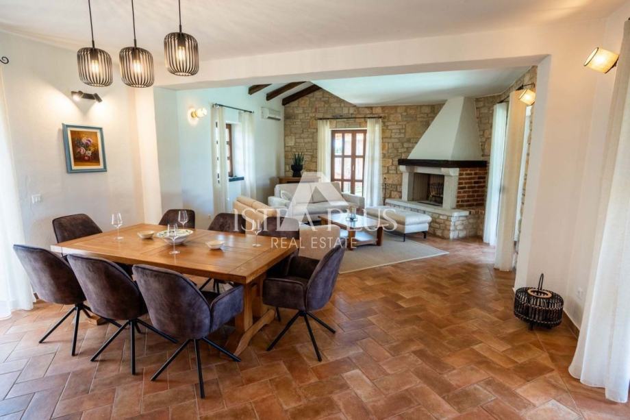 Svaka vila raspolaže s četiri prostrane spavaće sobe s en suite kupaonicama, moderno opremljenom kuhinjom, blagovaonicom za osam osoba te elegantnim dnevnim boravkom s otvorenim kaminom i autentičnim detaljima od hrvatskog hrasta. Dodatno, svaka nekretnina uključuje grijani privatni bazen, sunčalište, roštilj zonu, zaseban WC i spremište i dva natkrivena parkirna mjesta.Vile su renovirane 2024 godine.