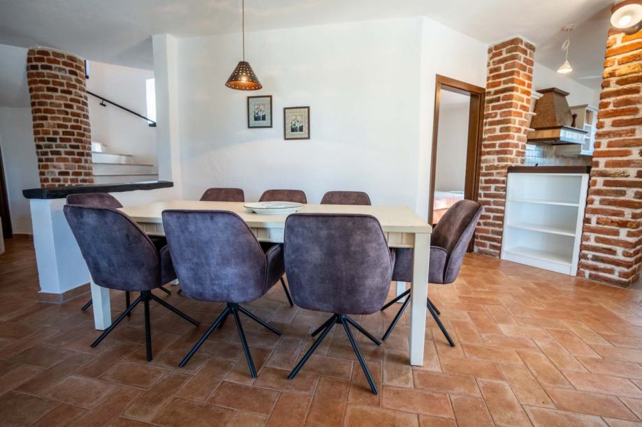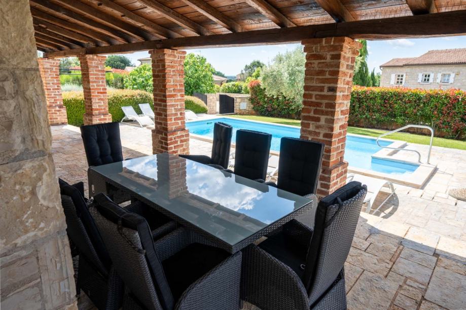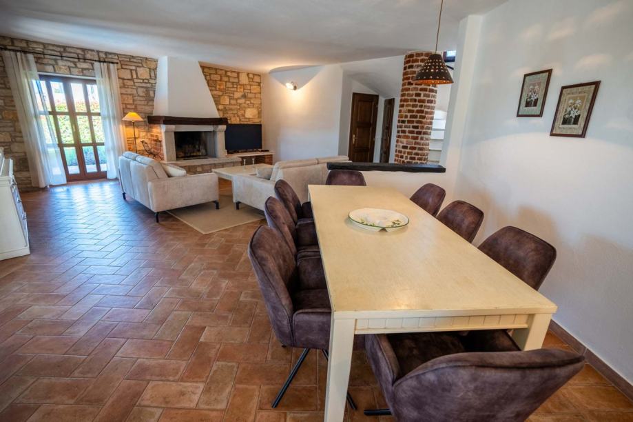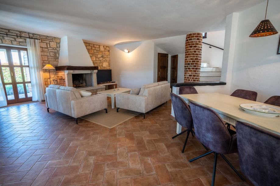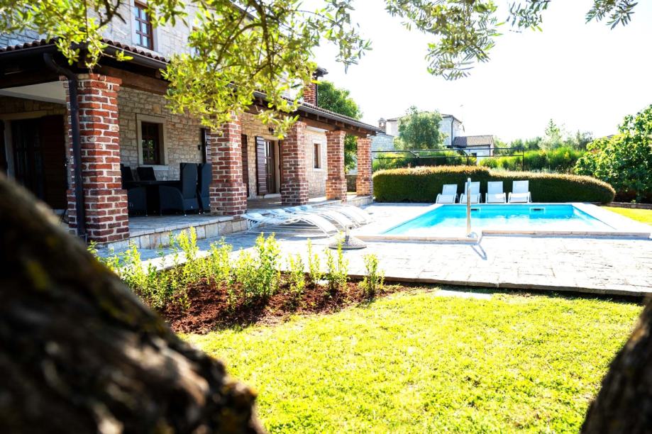 Vila odiše istarskim šarmom – građena je od autohtonog kamena, s drvenim gredama, toplim bojama i pažljivo biranim detaljima koji pružaju osjećaj doma i opuštanja. Prostrano dvorište, bujna mediteranska vegetacija i privatni bazen čine je idealnim mjestom za obiteljski odmor ili miran bijeg od svakodnevnice.