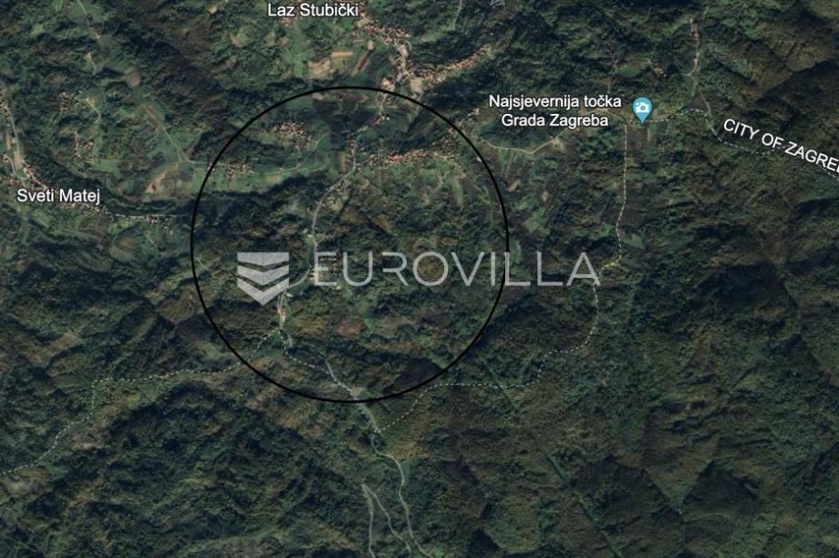 Sveti Matej, Laz Bistrički. Land along the Sesvete-Marija Bistrica road, in an attractive elevated location. The land consists of three connected parcels and has various potential. It is situated right at the junction of the City of Zagreb and the Krapina-Zagorje County, next to the well-known...