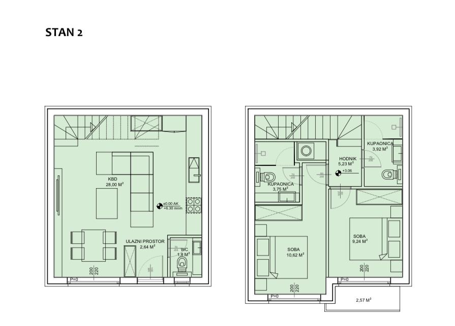 U predivnom malenom mjestu Sv. Petar na Moru gradi se moderni stambeni objekt s 9 stambenih jedinica na udaljenosti od plaže od 180 m.Dvoetažni stan S2 koji se nalazi u prizemlju i na prvom katu objekta površine 72,55 m2, sastoji se od prostranog dnevnog prostora površine 28 m2 (kuhinja,...