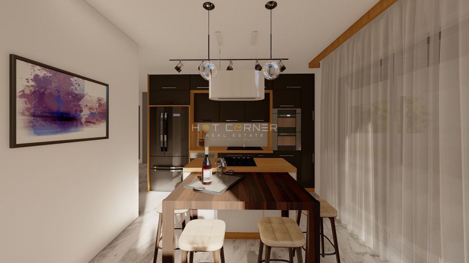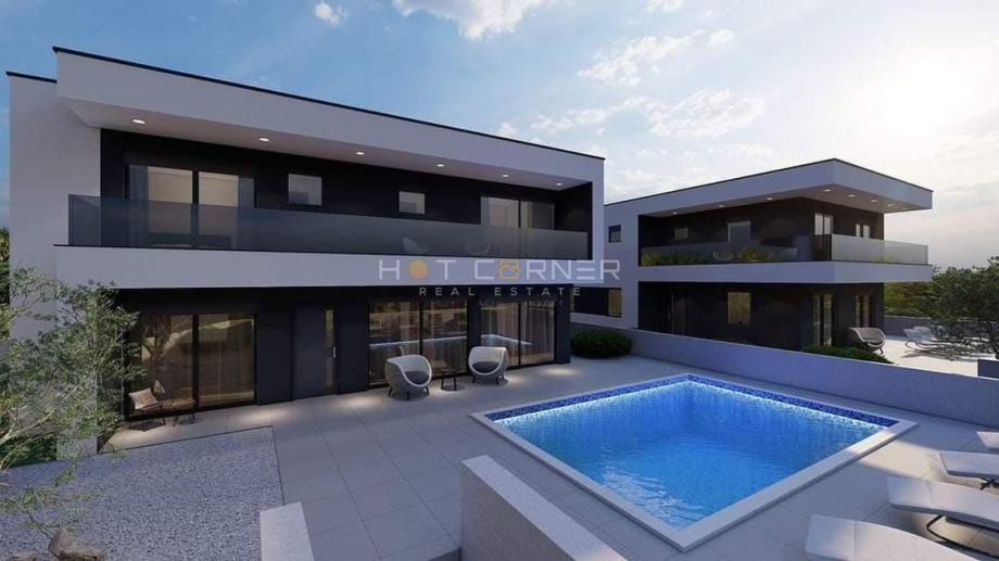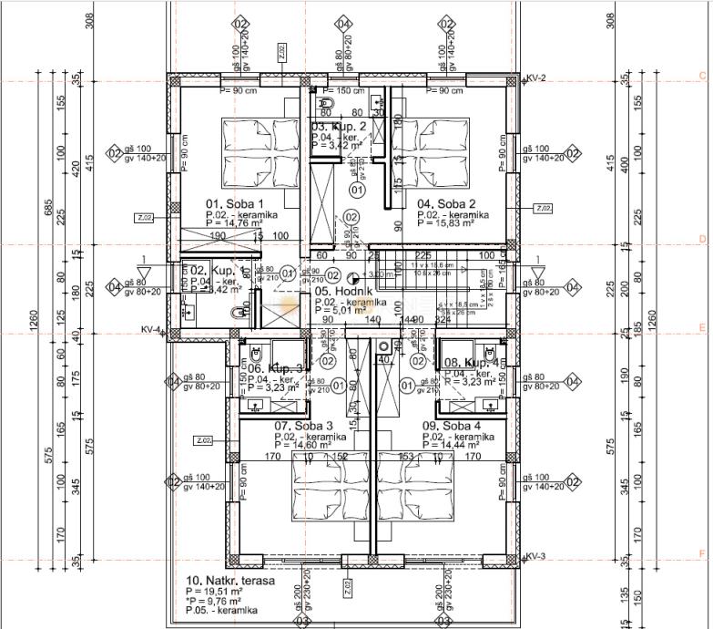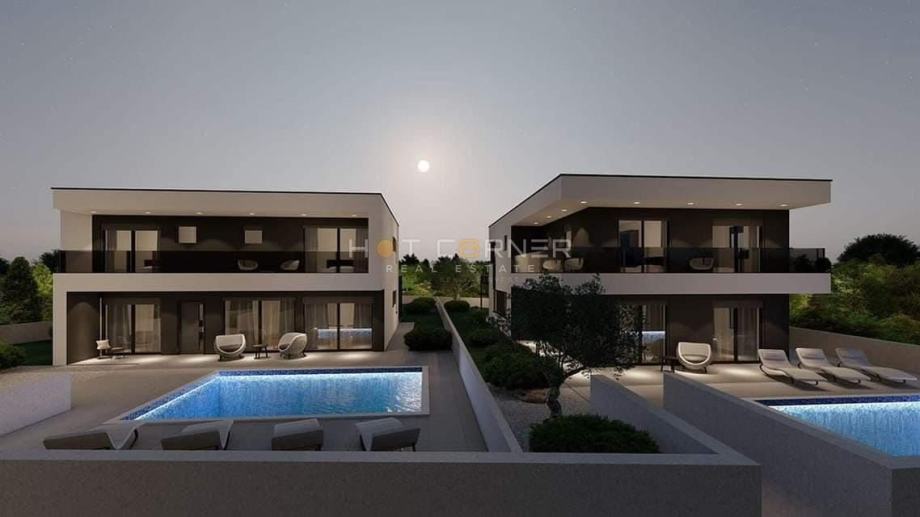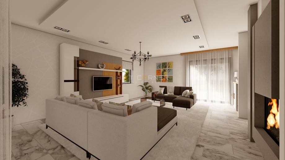 - na katu : četiri spavaće sobe svaka sa svojom kupaonicom te garderobom te terasa za dvije spavaće sobe.