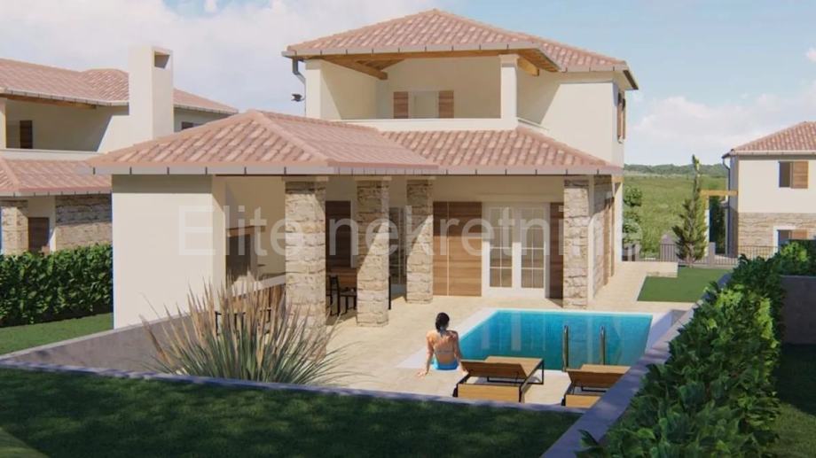 Svetvinčenat, Cukrići - vila u izgradnji 125 m2, terasa sa ljetnom kuhinjom i bazenom, prostrana okućnica od 280 m2, 2 parkirna mjesta!