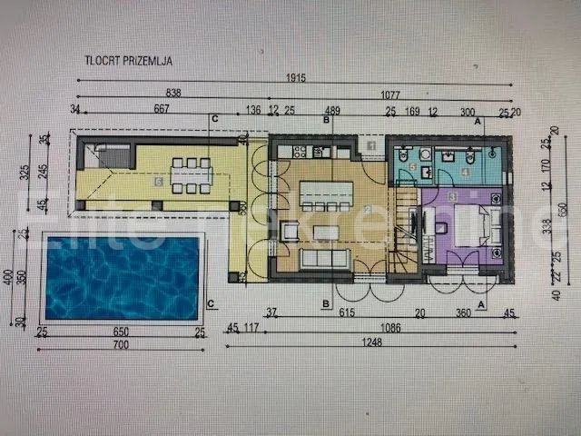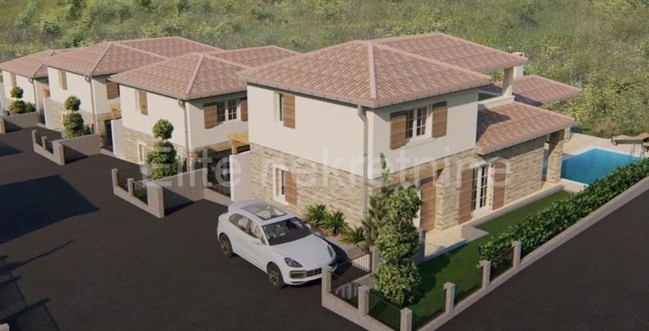 U malom naselju Cukrići prodaje se kuća u izgradnji sa bazenom, ukupne stambene površine 125 m2.Sastoji se od prizemlja i kata.Na prizemlju se smjestila spavaća soba sa vlastitom kupaonicom, toalet, kuhinja te dnevni boravak sa izlazom na veliku natkrivenu terasu sa ljetnom kuhinjom i bazenom.Na katu se nalazi spavaća soba sa vlastitom kupaonicom te natkrivenom terasom.Villa raspolaže sa prostranom okućnicom od 280 m2 okućnice te 2 parkirna mjesta.