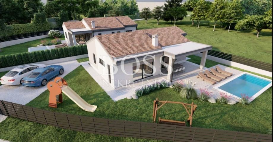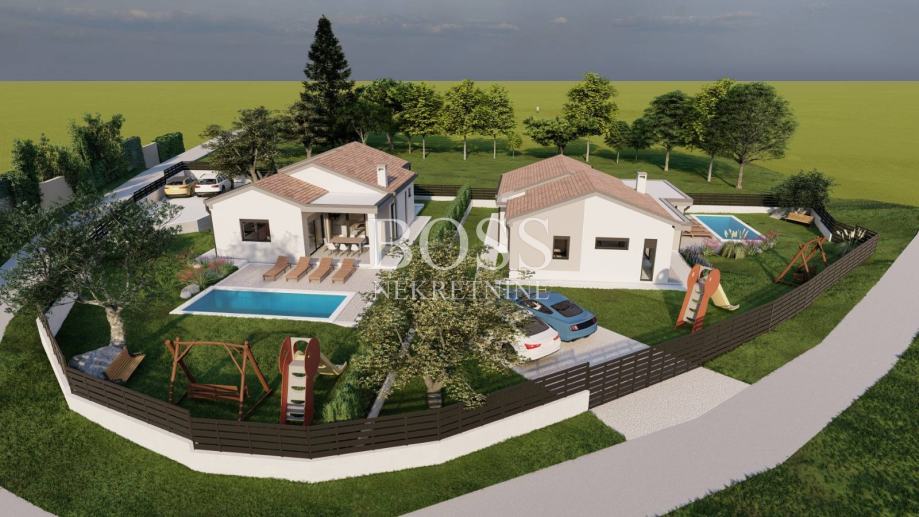 Istra, u okolici Svetvinčenta posredujemo pri prodaji dvije kuće za odmor s bazenima. Kuće su prizemnice, 110m2 s bazenima od 26 m2, s okućnicom od 550m2. Kuće se sastoje od dnevnog boravka i kuhinje s blagovaonom, dvije spavaće sobe, kupaone, ostave i natkrivene terase. Pri gradnji se koriste kvalitetni materijali. Planiran završetak radova prosinac 2025. godine. Uredna vlasnička dokumentacija. Boss, kontakt: 091/782-2323 Tihomir