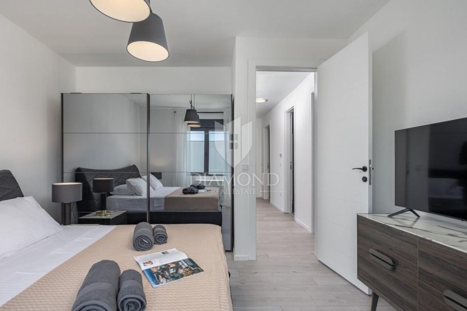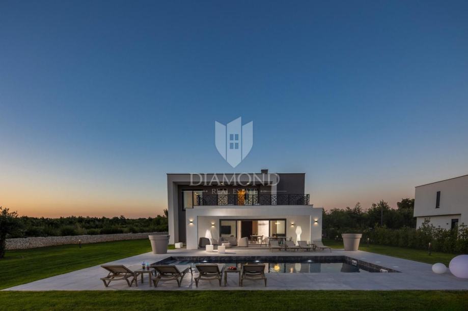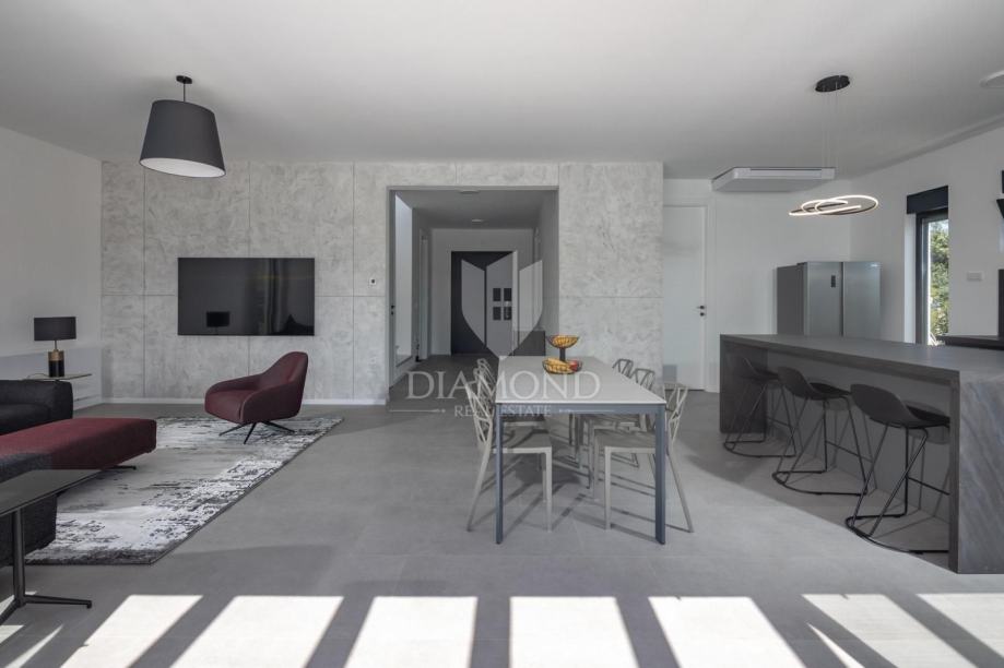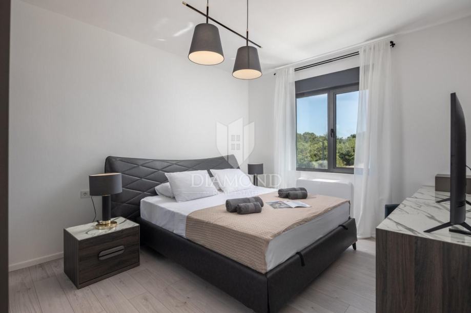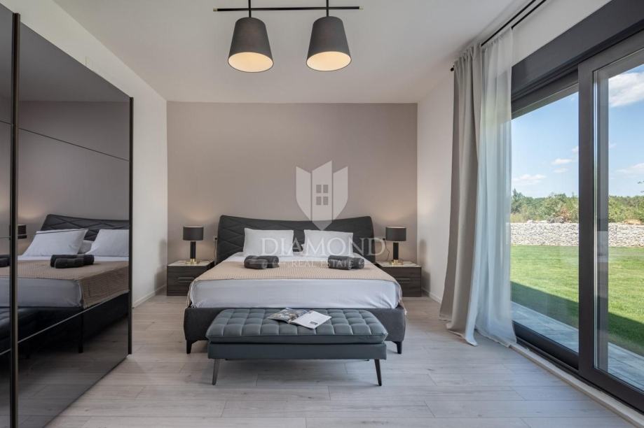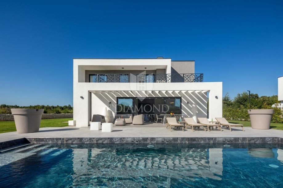 Smještena u blizini šarmantnog centra Svetvinčenta, ova moderna vila nudi 310 m² sofisticiranog prostora osmišljenog za ugodan život ili luksuzan odmor. Prizemlje se ističe prostranim otvorenim prostorom koji povezuje dnevni boravak, kuhinju i blagovaonicu, dok je na katu smješteno četiri spavaće sobe, svaka s vlastitom kupaonicom, pružajući maksimalnu privatnost i udobnost.