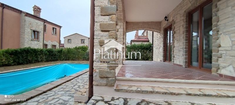 Kuca se sastoji u prizemlju od hodnika, kupaone, kotlovnice, blagovaone, kuhinje i dnevnog boravka sa kojeg se izlazi na natkrivenu terasu. Na katu se nalazi velika terasa sa pogledom na more, hodnika, kupaone, 3 spavace sobe od kojih svoja ima vlastitu kupaonu. Čisto vlasništvo Bazen 34m2.