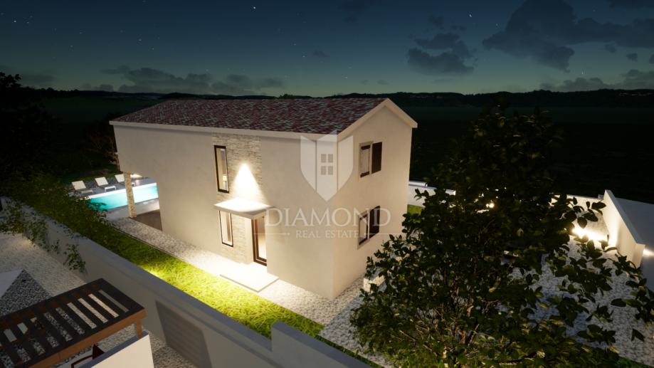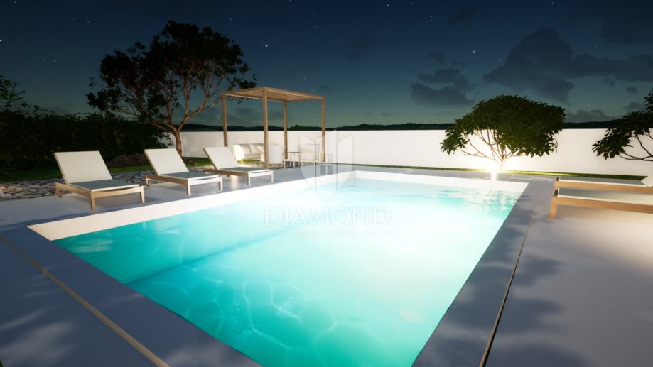 Okućnica je pažljivo uređena kako bi se maksimalno iskoristio vanjski prostor. Predviđena je ljetna kuhinja za uživanje u obrocima na otvorenom, prostrano sunčalište za opuštanje te bazen s dizalicom topline koja omogućava grijanje vode tijekom cijele godine.