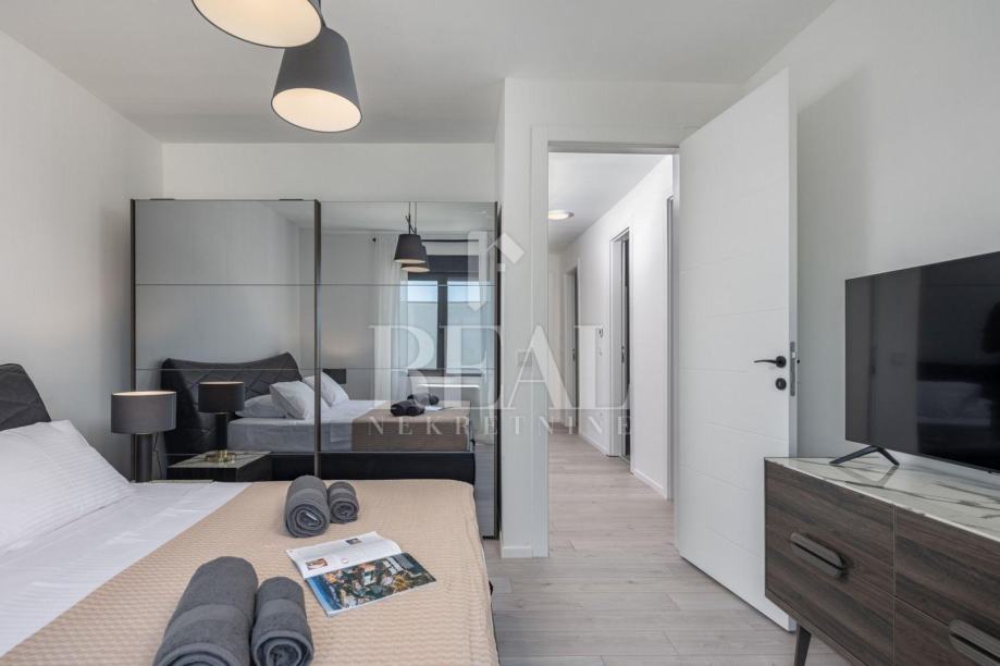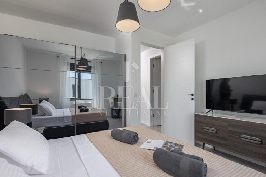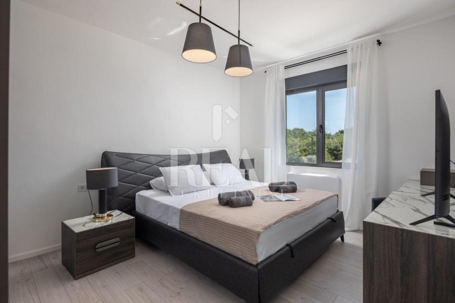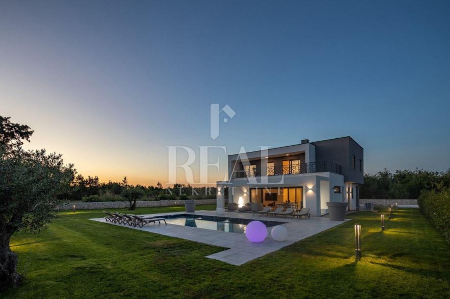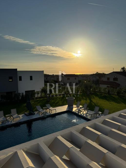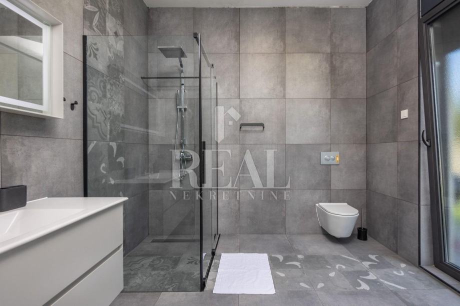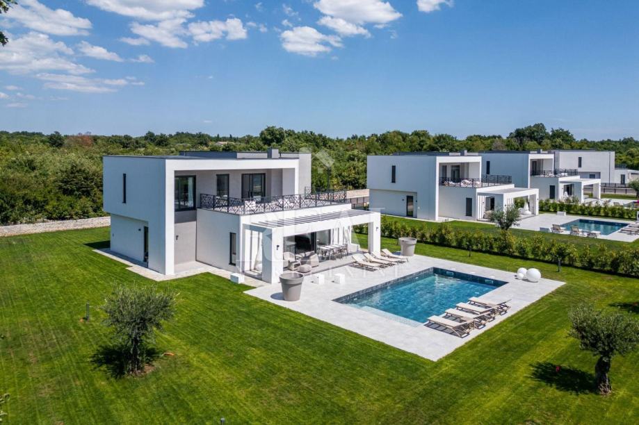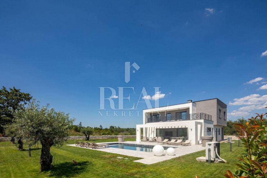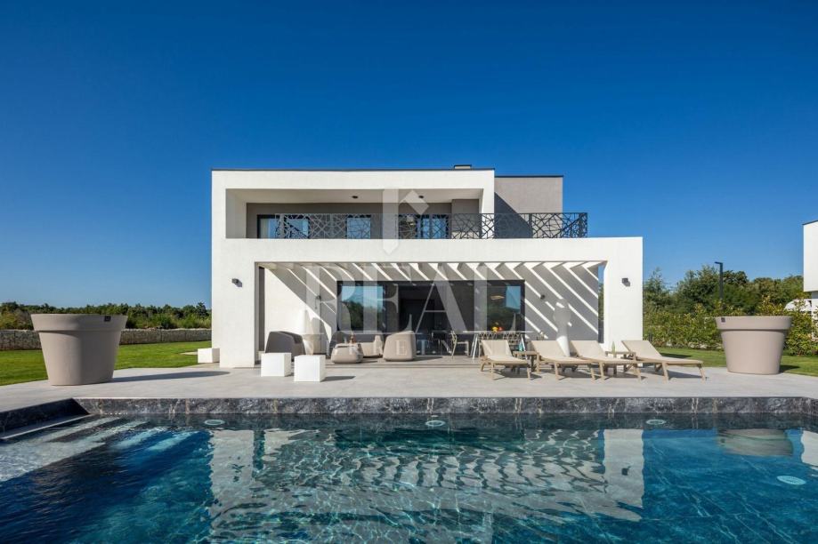 Okolica Juršića novoizgrađena luksuzna vila stambene površine 310m2 na zemljištu od 1200m2.Ukupno 4 spavaće sobe i 4 kupatila, prostran dnevni boravak sa kuhinjom i blagavaonicom, spremištem, garderobom i velikim terasama. Potpuno je opremljena novim namještajem i bijelom tehnikom . Bazenska tehnika uz automatsko doziranje i dizalicu topline .