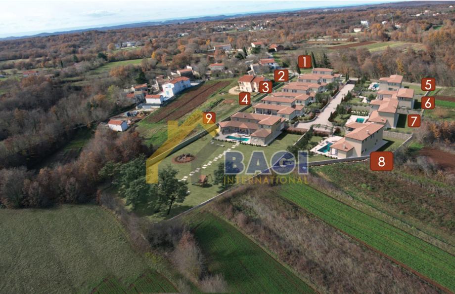Kompleks mediteranskih vila sa bazenima nalazi se u malom mirnom selu Otočani par kilometara od mjesta Svetvinčenat i neposrednu blizinu Istarskog ipsilona (autoputa) od svega 4 km. Udaljenost od većih gradova kao Pule je 30 km a Rovinja svega 20 km, što stanovnicima pruža blizinu urbanim sredinama i moru ali uz istodobnu mogućnost življenja u miru i tišini šarmatnog istarskog sela.