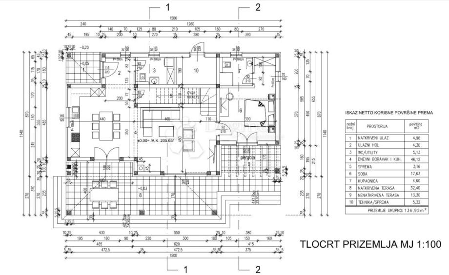 - dvije natkrivene terase.