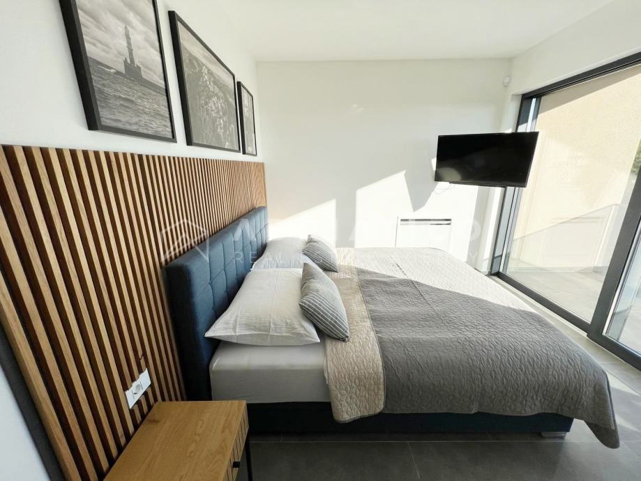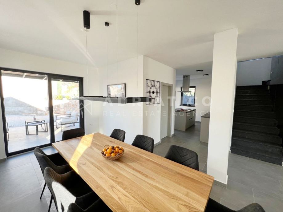 Kuća raspolaže s četiri prostrane spavaće sobe, svaka s vlastitom kupaonicom, što jamči potpunu privatnost i udobnost svim ukućanima i gostima. Velika natkrivena terasa od 40 m² proširuje dnevni prostor na otvoreno, a bazen veličine 7 x 5 metara pruža pravu oazu za opuštanje.