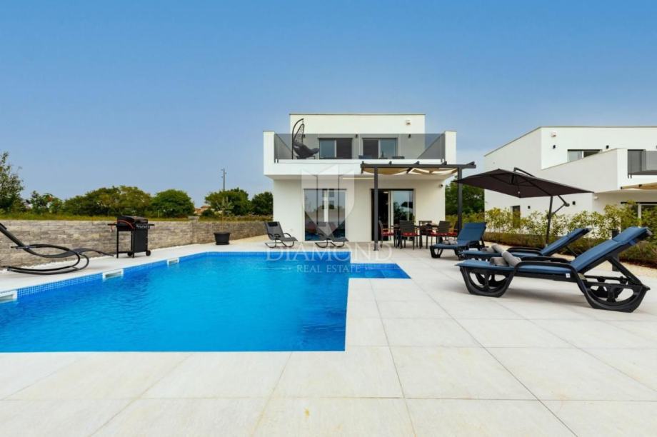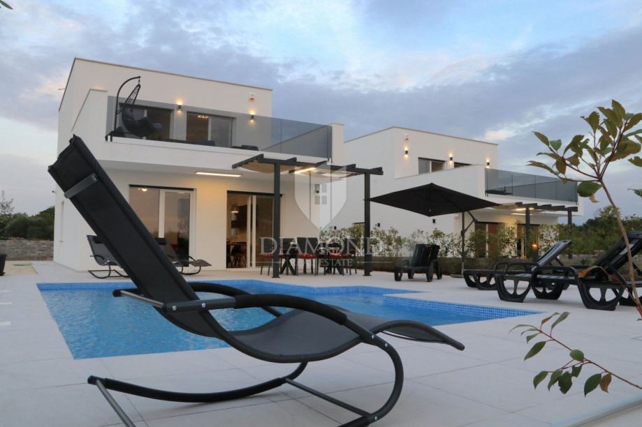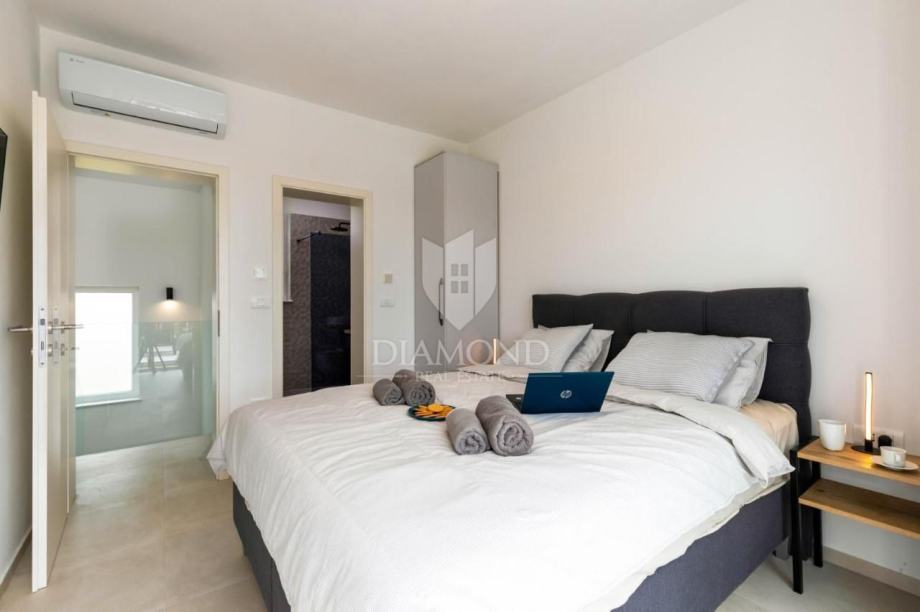 Ova moderna dvokatnica ukupne je površine 131 m2. U prizemlju se nalazi prostran open space koji obuhvaća potpuno opremljenu kuhinju, blagovaonicu i dnevni boravak s direktnim izlazom na plažu bazena. Tu je također smještena jedna spavaća soba, kupaonica, te prostran skladišni prostor i strojarnica.