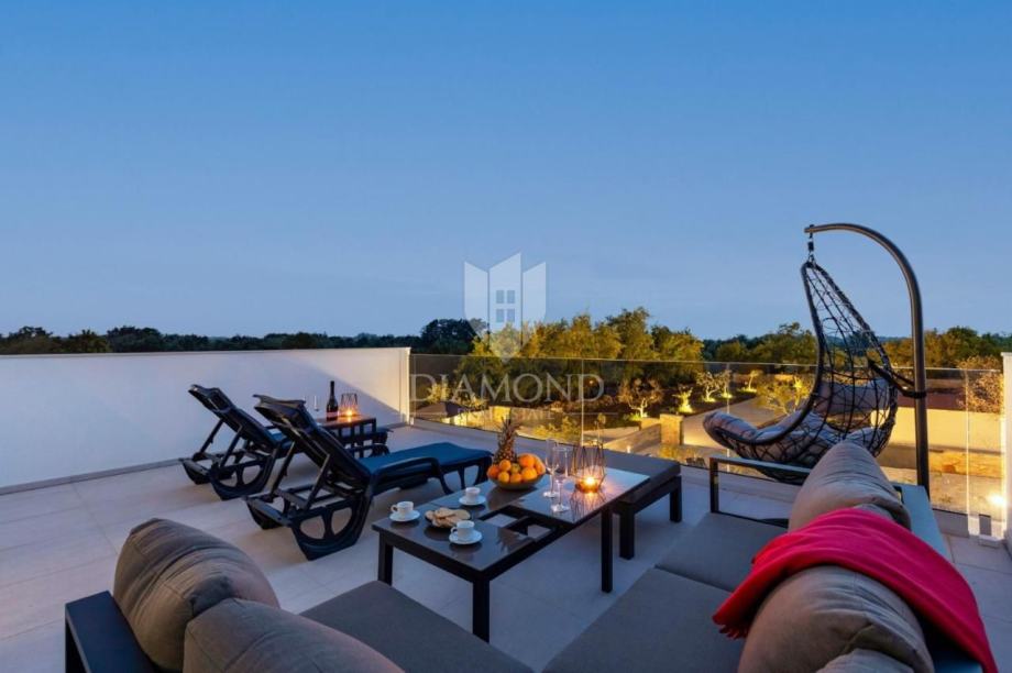 Kat je zamišljen kao noćni dio s dvije komforne spavaće sobe, svaka sa svojom integriranom kupaonicom, te izlazom na balkon s kojeg se pruža predivan pogled na okolni prirodni krajolik i maslinik. Maslinik, koji je osvijetljen u večernjim satima, stvara poseban ugođaj i ističe prirodnu ljepotu starog drveta masline.