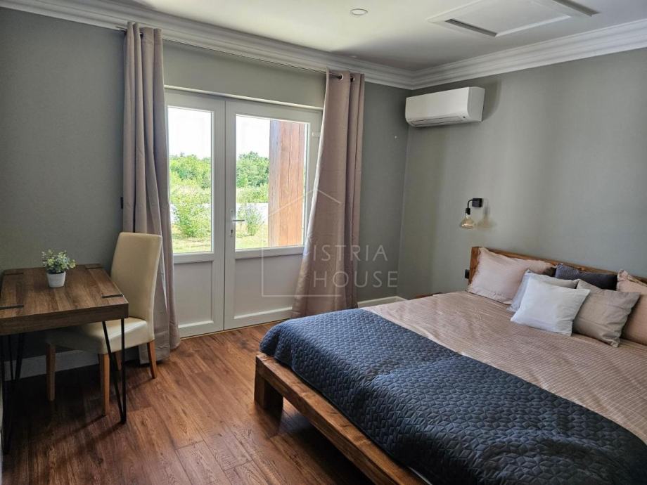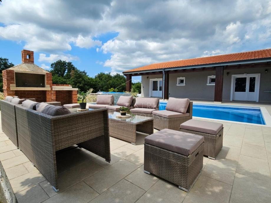 Nedaleko Svetvinčenta prodaje se kuća za odmor s bazenom i velikom okućnicom. Kuća se nalazi u mirnoj okolici te ima ukupnu površinu od 248 m2 dok je okućnica na 1500 m2. Kuća ima tri klimatizirane spavaće sobe sa vlastitim kupaonicama, gostinjski toalet, vešeraj , te otvorenu cjelinu koja se sastoji od kuhinje , blagovaone i dnevnog boravka sa pogledom i izlazom na vanjsku terasu i bazen. Do glavne kuće nalazi se još jedam manji objekt sa zasebnim ulazom te sa kupaonicom koje budući kupac može pretvoriti u studio , neki pomoćni prostor ili zašto ne u neku welness zonu.