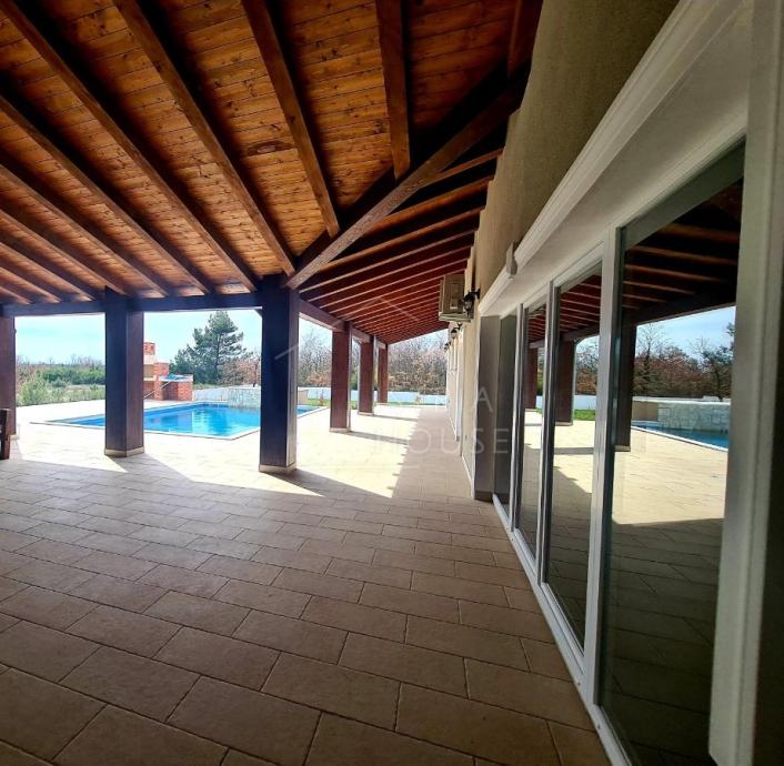 Adut nekretnine je velika i održavan okućnica sa bazenom kao centralnim mjestom te uz njega ljetna terasai kuhinja.