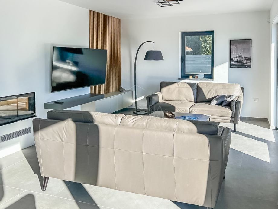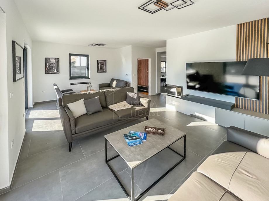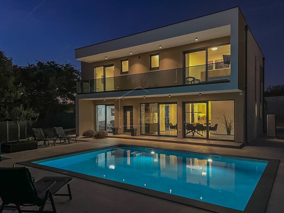 Vila ima moderni izgled sa ravnim krov te je građena koristići modernu tehnologiju i materijale. Grijanje i hlađenje riješeno je dizalicama topline.