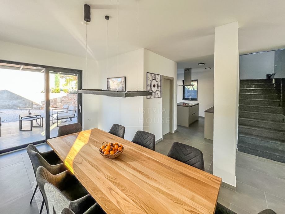 NA vanjskom dijelu kuće nalazi se s jedne strane bazen od 40m2, a s druge strane kuće vanjska natkrivena terasa od 37.2 m2