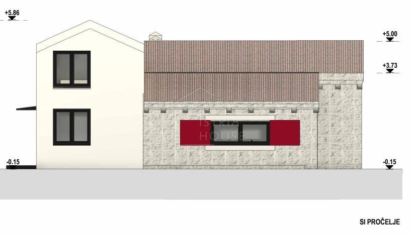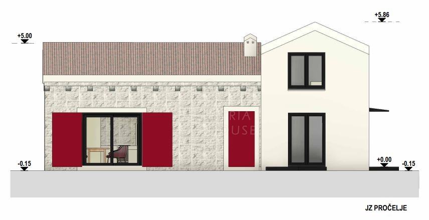 Kuća je trenutno u fazi izgradnje - predviđena je izgradnja samostojeće stambene građevine, prizemlje i kat, pomoćnih građevina - bazen s bazenskom tehnikom, sabirna jama, 2 parkirna mjesta.
