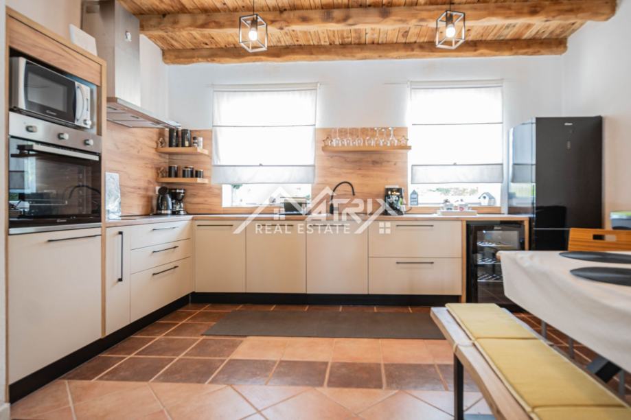 U mirnom istarskom naselju Čabrunići, svega nekoliko minuta vožnje od slikovitog Svetvinčenta, smještena je ova potpuno opremljena samostojeća kuća s velikim bazenom i pažljivo uređenim interijerom. S ukupnom stambenom površinom od 199 m², raspoređenih na dvije etaže, ova nekretnina savršeno spaja udobnost modernog doma s mediteranskim šarmom.