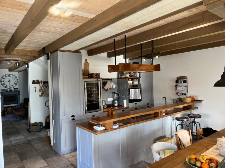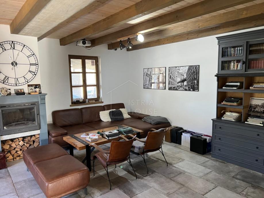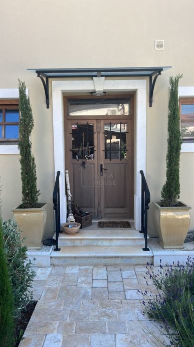 Nedaleko Svetvinčenta prodaje se komforna kuća s bazenom, smještena u mirnom naselju okruženom prirodom. Arhitektonski bezvremenska, kuća spaja rustikalne i moderne elemente.