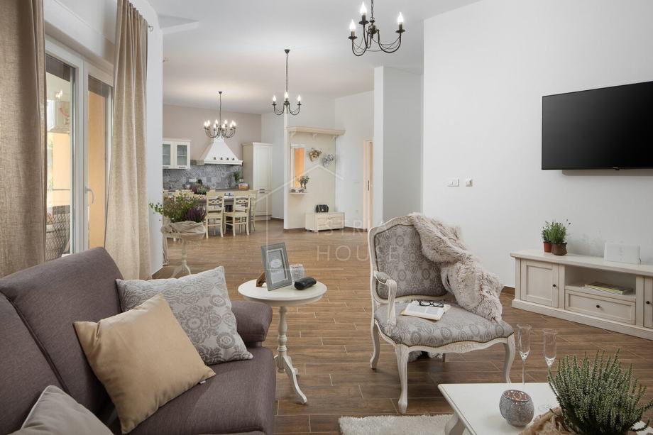 Kuća je prizemna i samostojeća, izgrađena u modernom stilu te je unutrašnjost uređena sa visokim ukusom pazeći na detalje koji istu naglašavaju.
