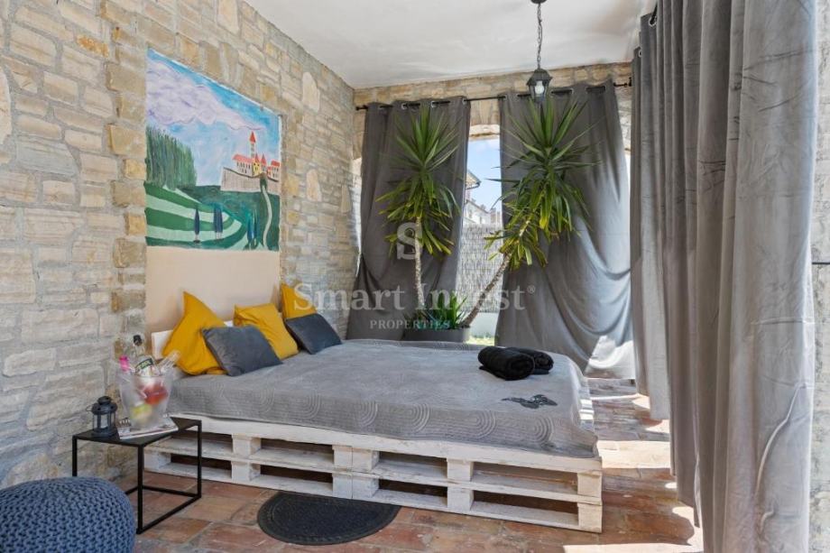 Ova prekrasna vila trenutno se iznajmljuje kao kuća za odmor te pruža budućem vlasniku puno mogućnosti - kušaonica, vinarija, agroturizam, konoba i slično, kao i mogućnost daljnjeg turističkog iznajmljivanja.
