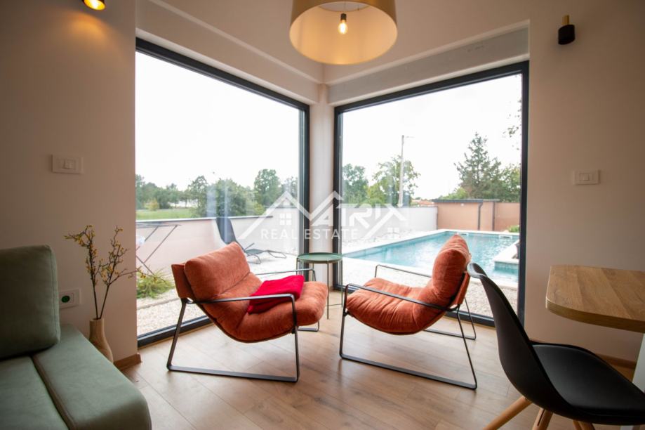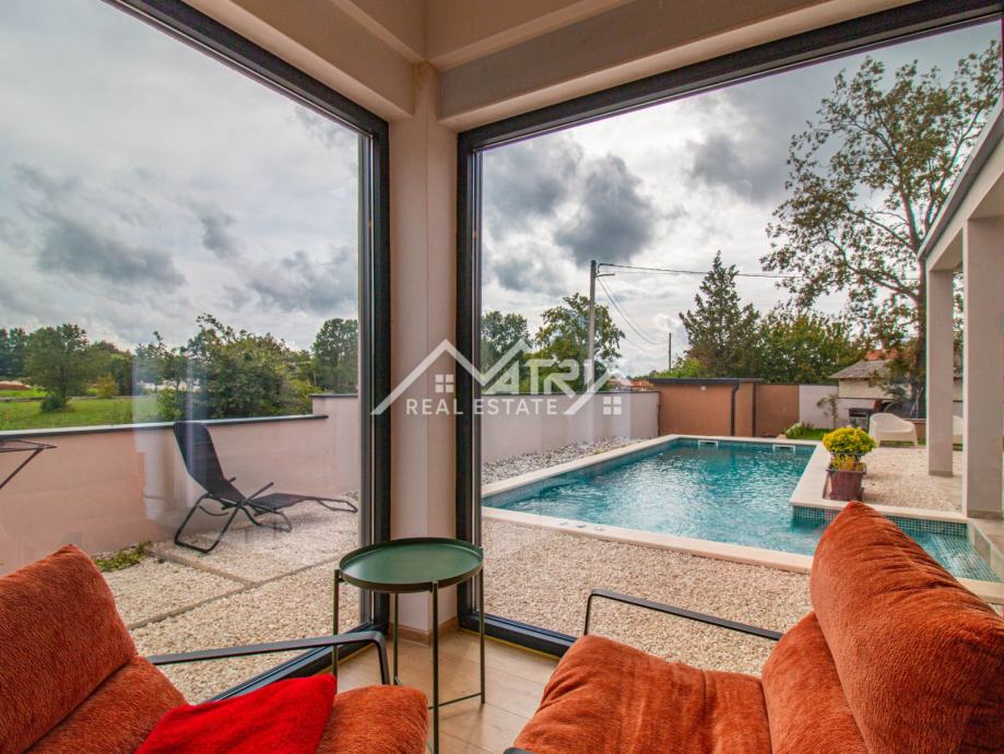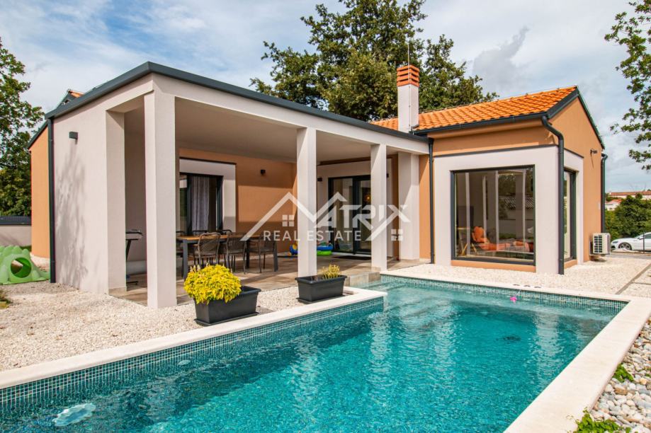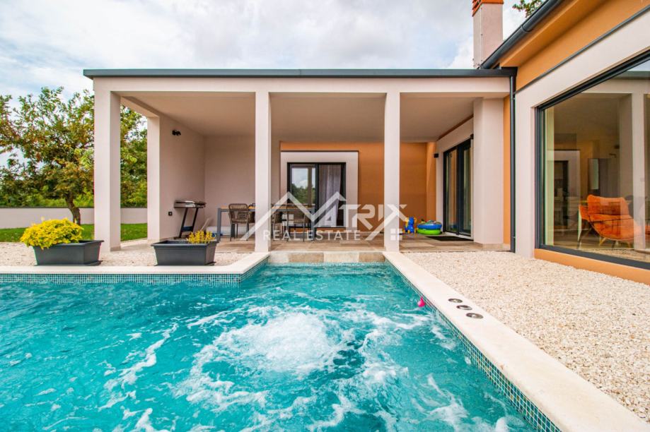Svetvinčenat - Moderna prizemnica s bazenom na odličnoj lokaciji! Novogradnja spremna za useljenje!