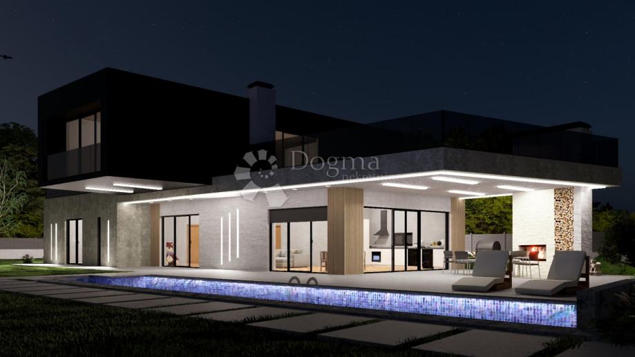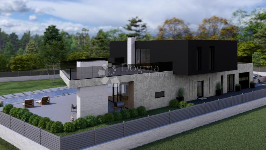 Ovo prostrano zemljište površine 4060 m² sastoji se od građevinskog dijela od 1440 m² i poljoprivrednog dijela od 2620 m². Posjeduje idejni projekt za modernu vilu s bazenom, idealnu za luksuzan život ili kao investiciju za turistički najam. Projekt obuhvaća kuću na dvije etaže: u prizemlju se nalazi otvoreni prostor s kuhinjom, blagovaonicom i dnevnim boravkom, dvije spavaće sobe s vlastitim kupaonicama, dodatni toalet, garaža i spremište, ukupne unutarnje površine 144,25 m², dok s terasama prizemlje doseže 224,64 m². Kat uključuje galeriju, kupaonicu i dvije terase ukupne površine 172,08 m². Na natkrivenom dijelu terase predviđena je ljetna kuhinja s kaminom, a u dvorištu bazen, savršen za uživanje u toplim istarskim danima. Projekt se ističe suvremenim dizajnom i pažljivo osmišljenim detaljima koji će zadovoljiti i najzahtjevnije kupce.