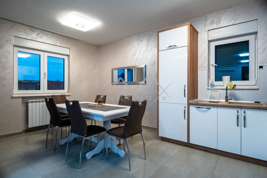 Zahvaljujući svojoj lokaciji, ova kuća se nalazi u blizini svih ključnih sadržaja kao što su škole, trgovine i zdravstvene ustanove, što dodatno čini ovu nekretninu izuzetno praktičnom za svakodnevni život. S obzirom na visoku kvalitetu gradnje, funkcionalnost prostora i blizinu glavnih prometnica, nekretnina je idealna kako za obitelji koje traže miran i udoban dom, tako i za investitore koji žele ostvariti prihod od turizma.