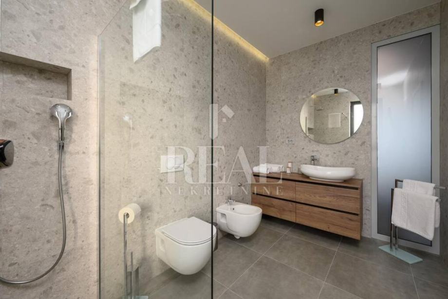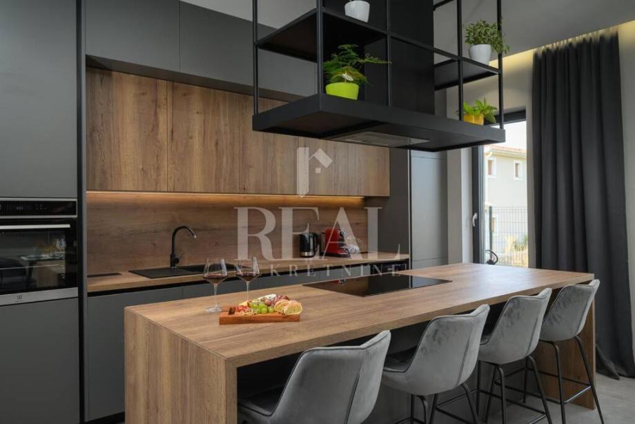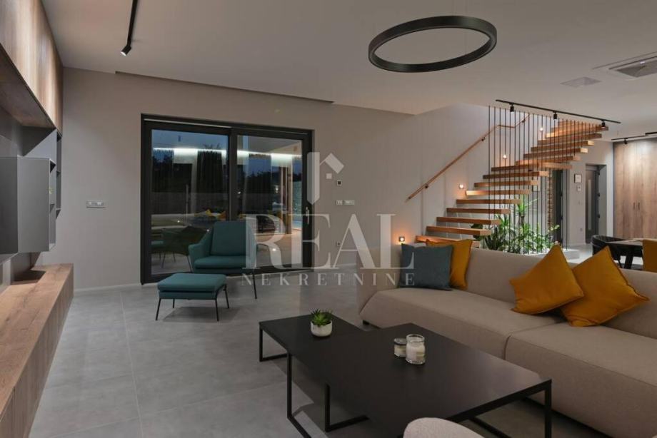 U manjem i mirnom mjestu u blizini Savićente, prodaje se moderna vila stambene površine od 252m2.Okućnica odličnog koncepta od 754m2 nudi parkiranje za četiri automobila te dodatne vanjske aktivnosti. Objekt se proteže na dvije etaže , na donjoj etaži nalazi se prostrani dnevni boravak sa kuhinjom i blagovaonicom i izlazom na terasu ,sunčalište i bazen, vešeraj i wc a gornju etažu pokrivaju 4 spavaće sobe sa vlastitom kupaonicom, od kojih dvije imaju izlaz na veliku terasu. Grijanje je na inverter klima uređaje a kupaonice i dnevni boravak imaju električno podno grijanje. Velika vanjska terasa koja je orijentirana prema bazenu ima i natkriveni roštilj.