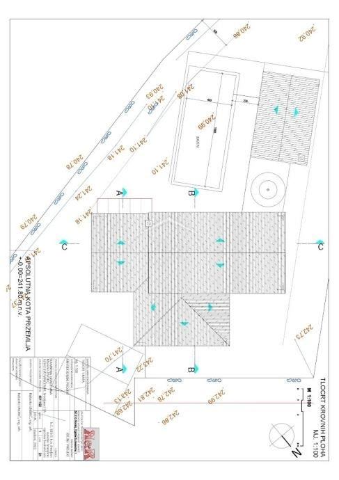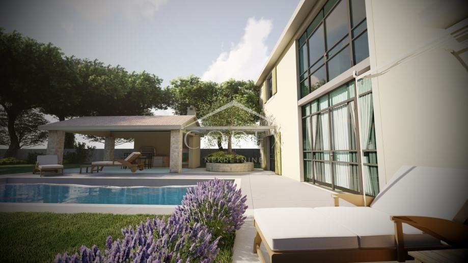 Kuća se sastoji od dnevnog boravka s kuhinjom i blagovaonicom, jedne spavaće sobe s kupaonicom, toaleta, kotlovnice i pomoćnog objekta u prizemlju i dvije spavaće sobe sa kupaonicama na katu. U kući če biti izvedeno grijanje i hlađenje inverterskim klima uređajima, PVC stolarija (alternativa drvo), keramičke pločice, parket u sobama, pločice u bazenu. U priremi će biti prva faza podnog grijanja, kolektora i solarne elektrane. U dvorištu po projektu je predviđen bazan površine 40 m2, travnjak sa automatskim navodnjavanjem, parkiralište za dva-tri automobila, ulazna dvorišna vrata sa automatskim otvaranjem, ogradni zid.