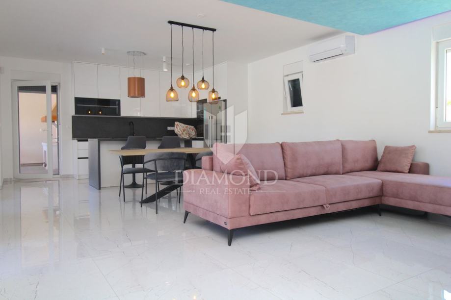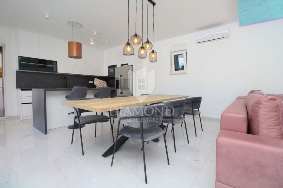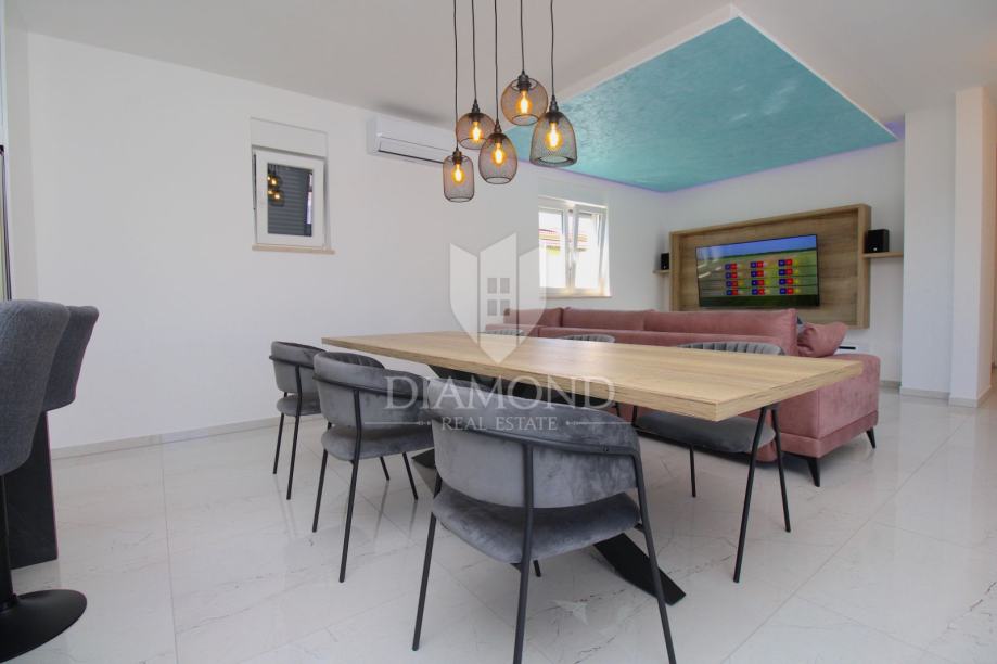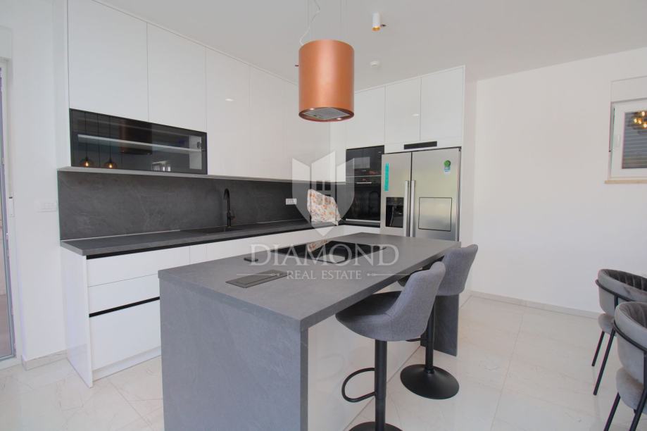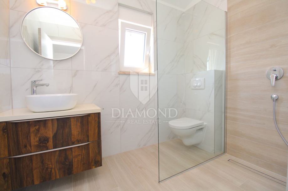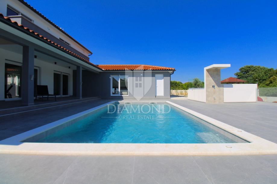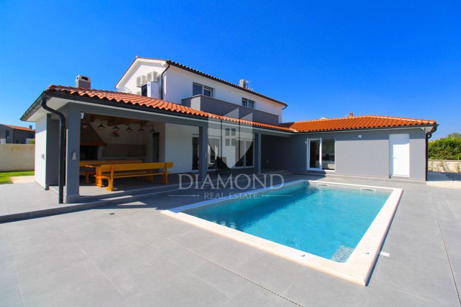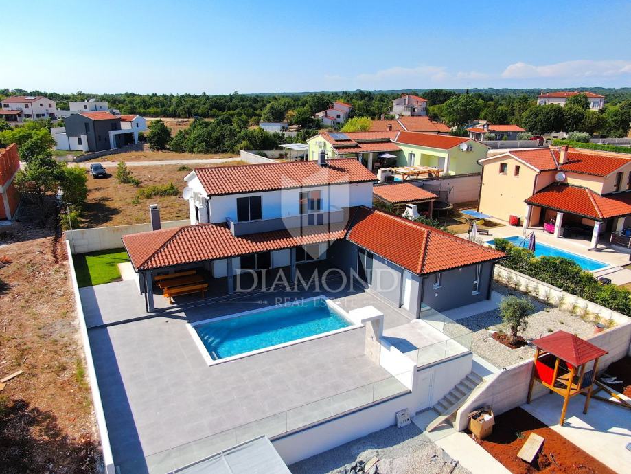 Prodajemo novu Villu sa bazenom na području Središnje Istre u okolici Svetvinčenta. Villa se prodaje potpuno nova, nekorištena, opremljena i namještena. Villa ima ukupnu površinu od 177 četvonih metara a sastoji se od 3 spavaće sobe sa kupaonama, velikim dnevnim prostorom koji se sastoji od kuhinje, blagovaone i dnevnog boravka, dodatnog toaleta i velike natkrivene terase sa ljetnom kuhinjom. Villa se nalazi na velikoj ograđenoj okućnici od 919 četvornih metara u kojoj se nalazi uređeni natkriveni parking za 3 automobila, dječije igralište, lounge zona a središnji dio zauzima veliki bazen sa uređenim sunčalištem. Villa ima postavljene najmodernije sustave grijnja i hlađenja, video nadzor, bazensku automatiku te se svime navedenim upravlja pomoću mobilne aplikacije.