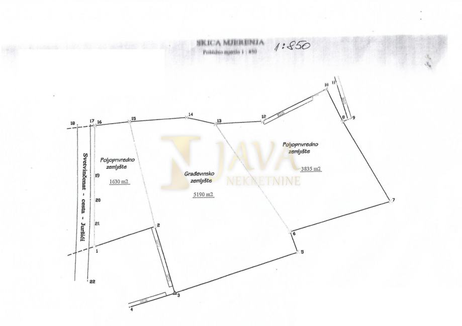 * Veličina 10665 m2, od toga 5.190 m2 građevinsko i 5.465 m2 poljoprivredno zemljište