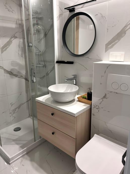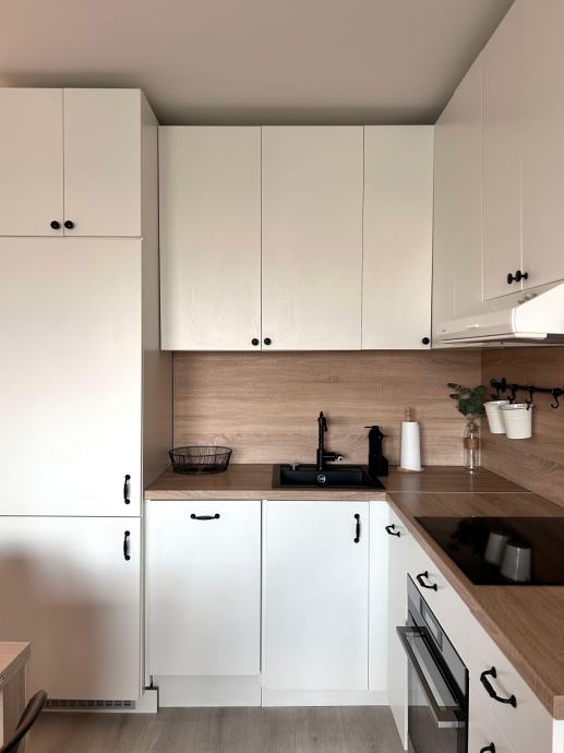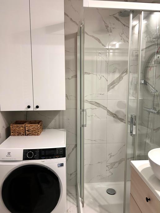 Stan je useljiv bez dodatnih ulaganja i opremljen svim kućanskim aparatima (perilica/sušilica rublja, perilica posuđa, hladnjak, električna ploča).