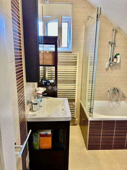 Opremljen je plinskim etažnim grijanjem i klima uređajem, krovište je dodatno izolirano prilikom kupnje, a ugrađeni su kvalitetni krovni prozori s unutarnjim i vanjskim roletama na daljinsko upravljanje, što osigurava dovoljno svjetla i ugodnu temperaturu tijekom cijele godine. Zahvaljujući svojoj poziciji u zgradi, stan je miran i zaštićen od buke.