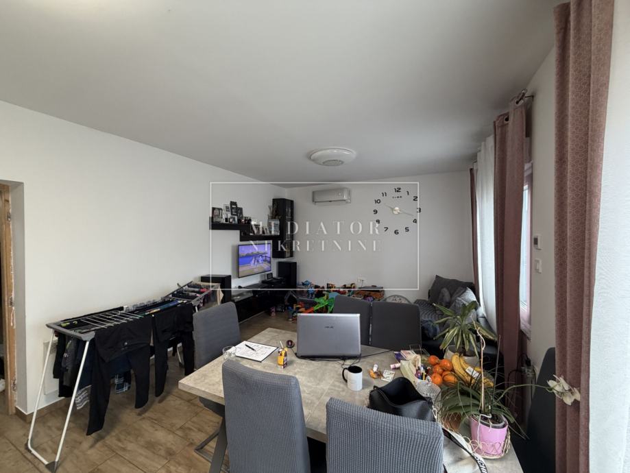 Kuća se sastoji od dva odvojena stana sa zasebnim ulazima, što pruža brojne mogućnosti korištenja. Gornji stan površine 87 m² uređen je i useljiv, a sastoji se od tri sobe, dnevnog boravka povezanog s kuhinjom, zasebnog WC-a te kupaonice. Stan je kompletno adaptiran 2020. godine. te je cijeloj kući ugrađena je nova PVC stolarija.