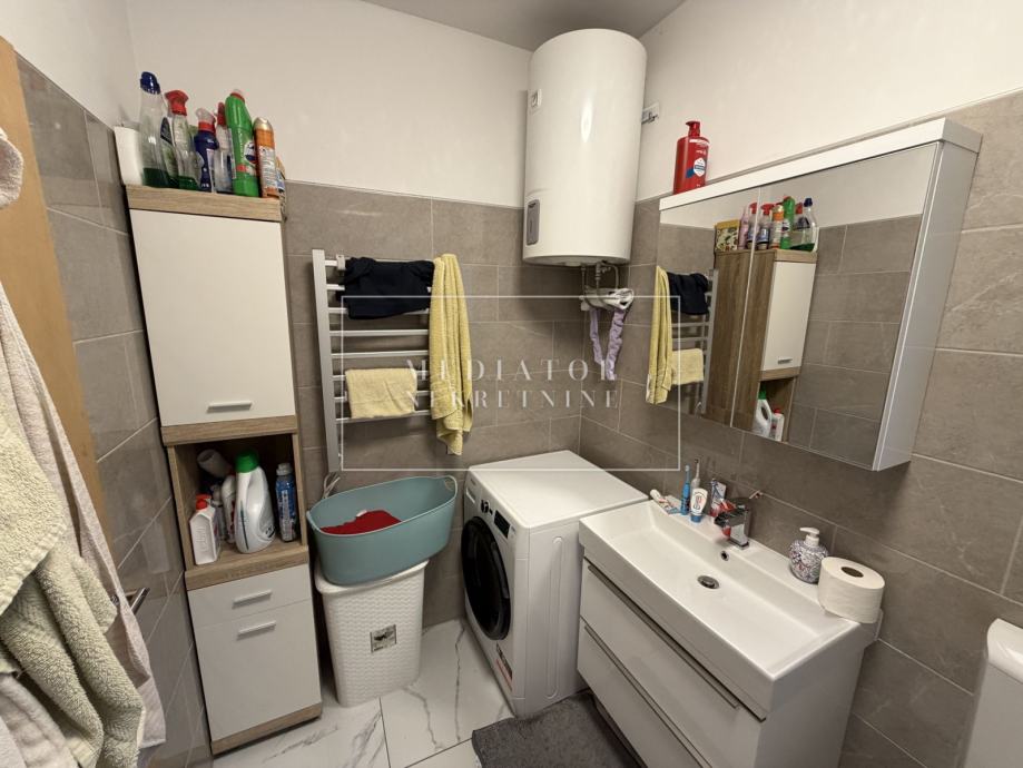 Donji stan površine 44 m² zahtijeva adaptaciju, a sastoji se od jedne sobe, dnevnog boravka s kuhinjom i kupaonice, te pruža odličan potencijal za uređenje prema vlastitim željama ili za budući najam.