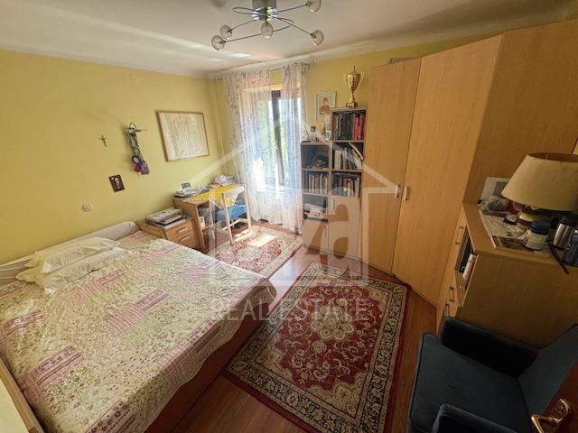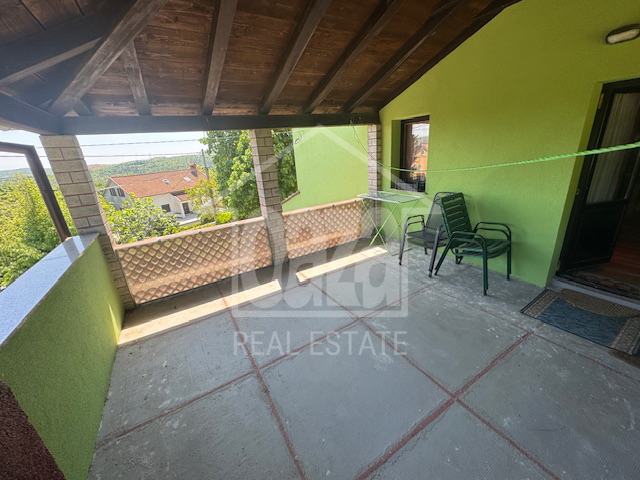 Cijela okućnica je ograđena suhozidom tako da ova kuća ima izuzetnu privatnost. U prizemlju kuće je dnevni boravak sa kuhinjom i blagovaonicom, garaža i nova kotlovnica. Na katu se nalaze 4 spavaće sobe, kupaonica i veća natkrivena terasa. U cijeloj kući je provedeno centralno grijanje na pelete. Nova fasada na kući. Zaista rijetka i posebna nekretnina u miru i tišini, a u blizini centra mjesta, svih tržnih centara kao i izlaza na zaobilaznicu. Do prvih plaža cca 10 km.