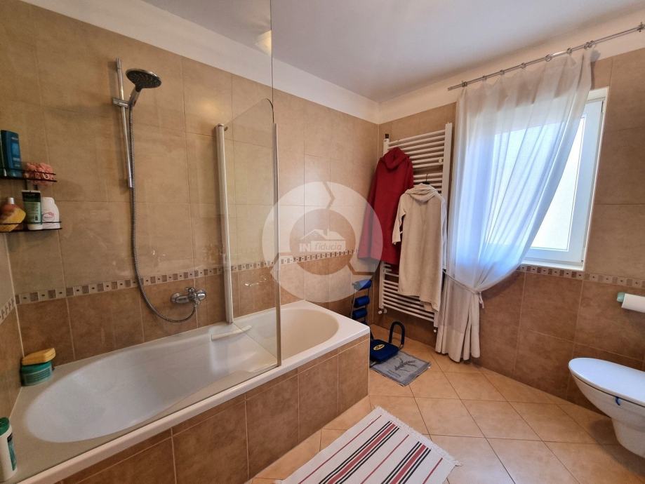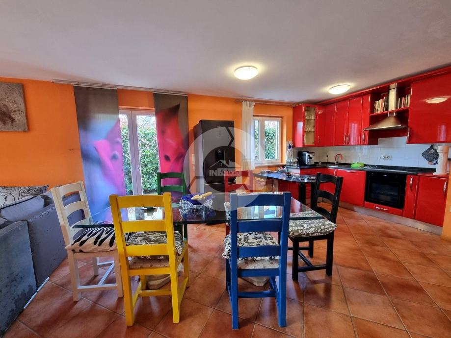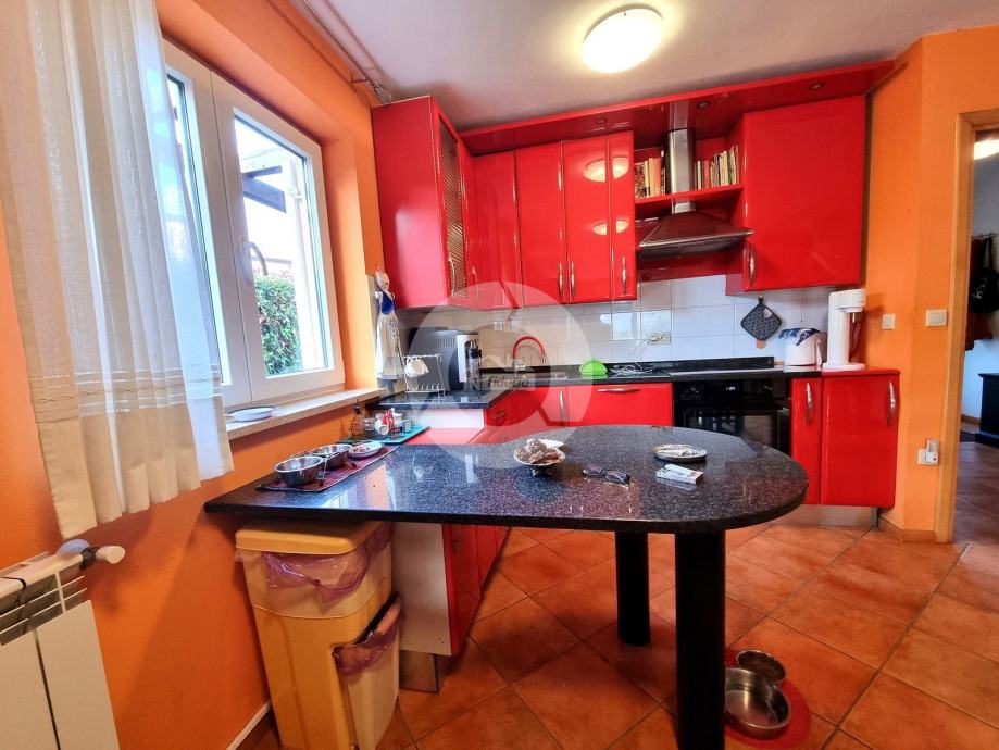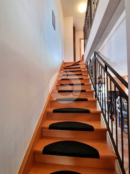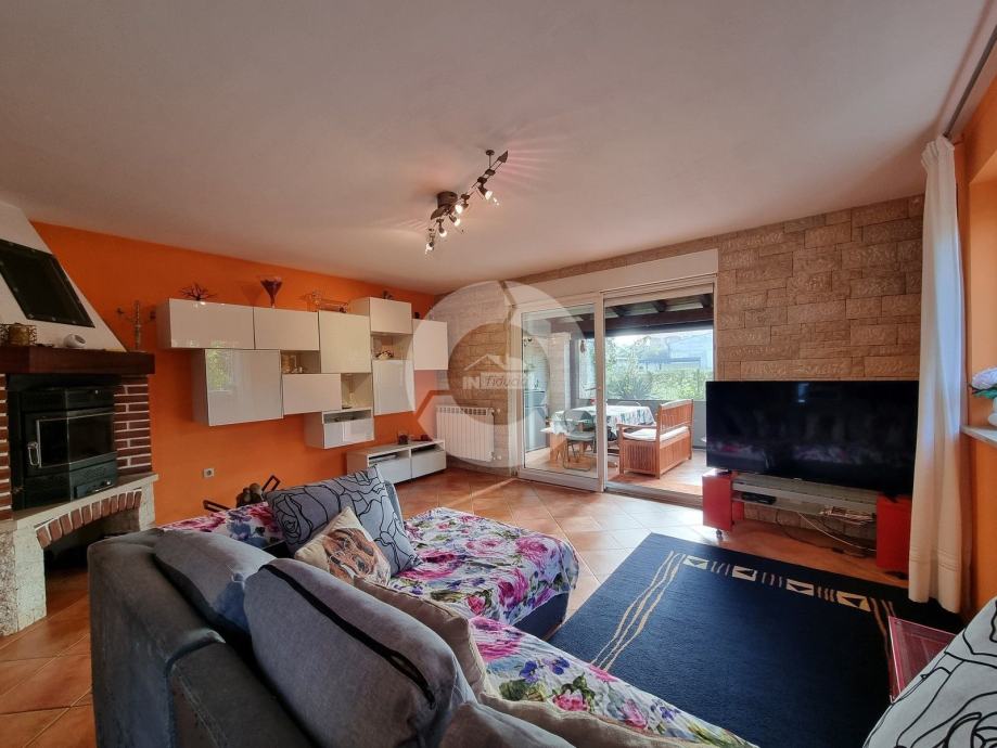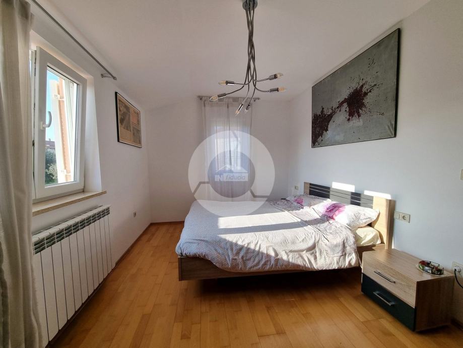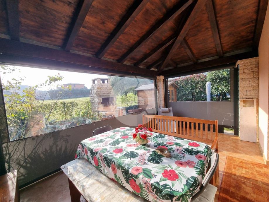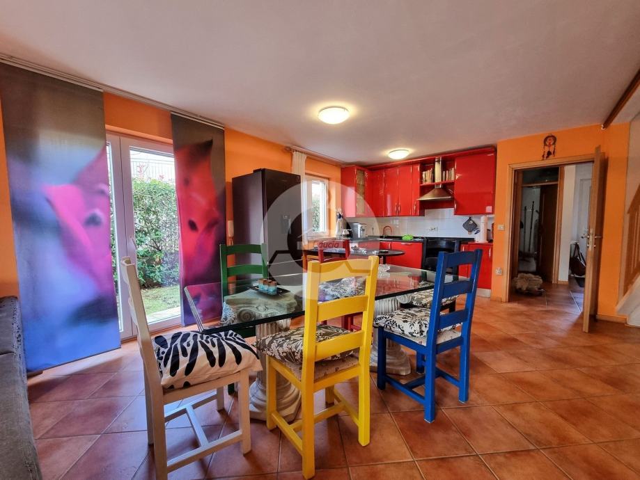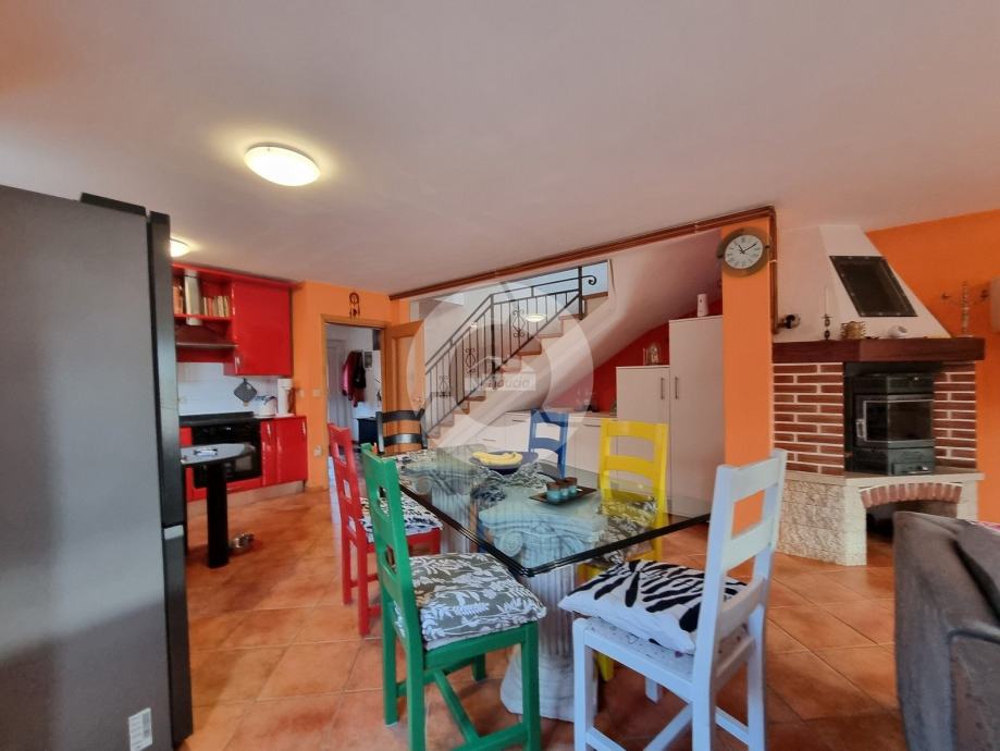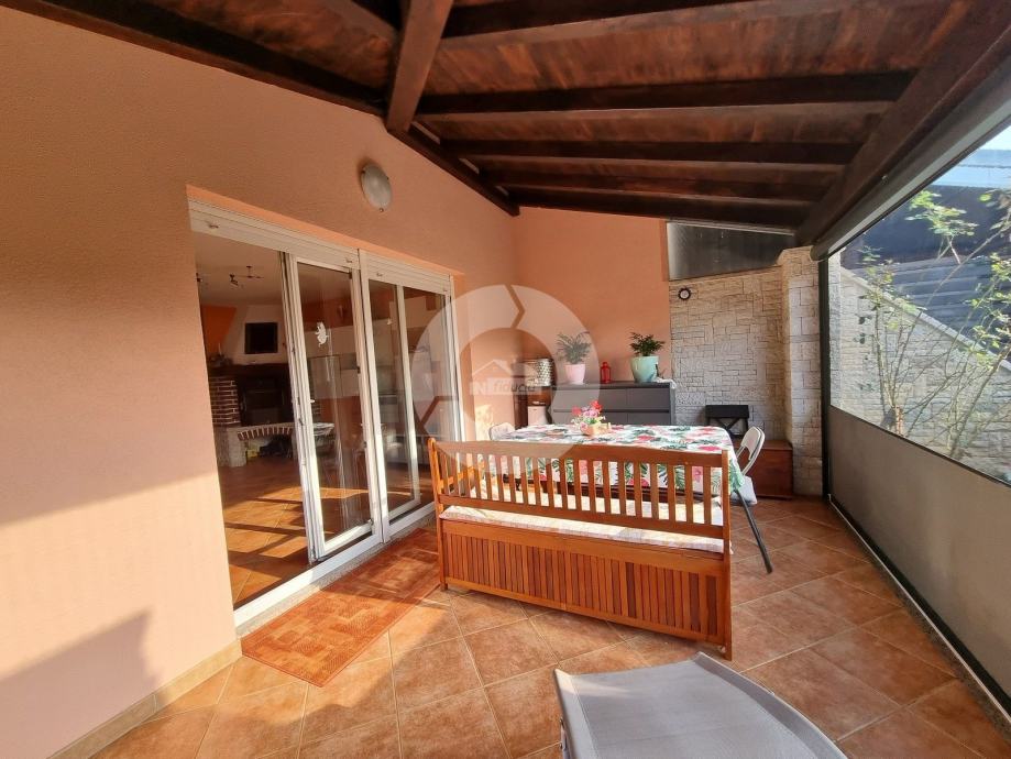 Obiteljska dvojna kuća nalazi se u malom istarskom gradiću nadohvat svih sadržaja mjesta, na mirnoj lokaciji. Sagrađena je 2008. godine na okućnici od 250 m2. Sastoji se od prizemlja i kata. U prizemlju se nalazi ulazni hodnik, spremište/kotlovnica, WC, te veliki dnevni prostor-kuhinja, blagovaona, dnevni boravak sa kaminom, sa izlaskom na vanjsku zatvorenu i natkrivenu prostranu terasu i vrt. Unutarnjim se stepenicama odlazi na kat gdje se nalaze tri spavaće sobe i prostrana kupaona. Grijanje je regulirano putem centralnog grijanja koji je povezan na kamin, te postoji prva faza za centralno grijanje na plin i klimu (na dvije lokacije). Ispred kuće postoje parkirna mjesta, mala drvarnica, dok se iza kuće nalazi vrta kućica sa terasom, mala okućnica, i roštilj. Na ovom objektu nema prostora za ugradnju bazena! Cijela okućnica je ograđena što je odlično za one koji imaju kućne ljubimce. Dobar je izbor i za obitelji s djecom obzirom na blizinu sadržaja (škola, vrtić), a može biti adekvatna i za najam.