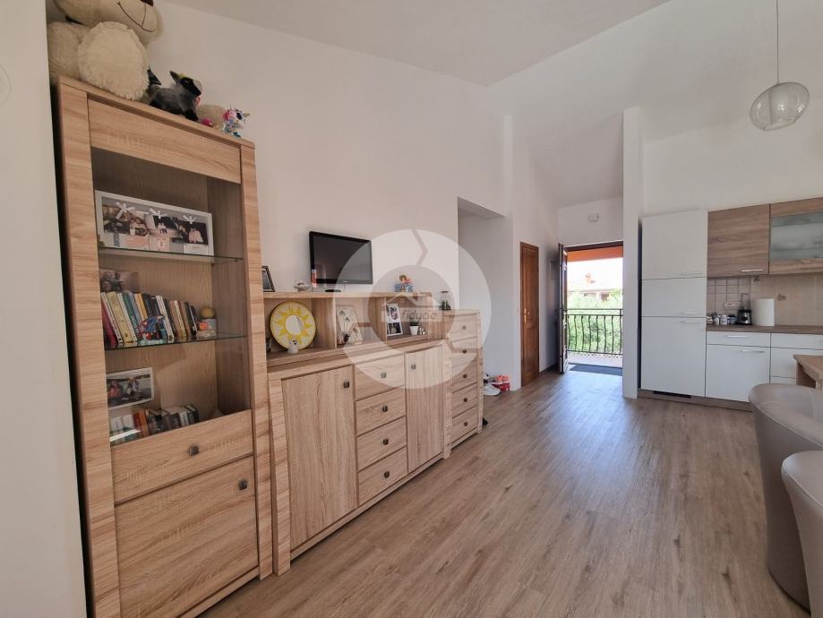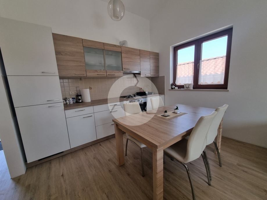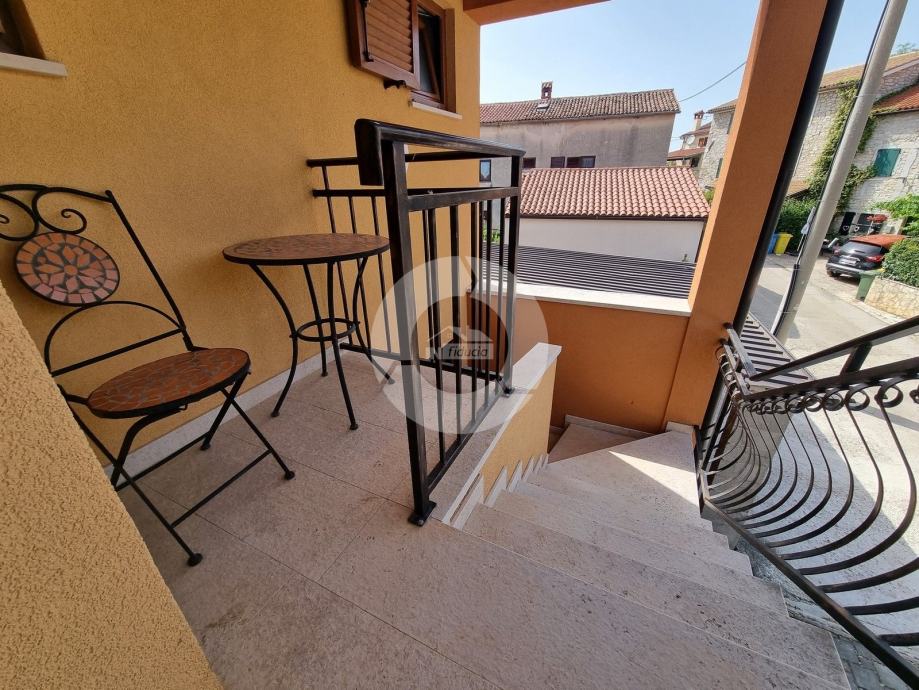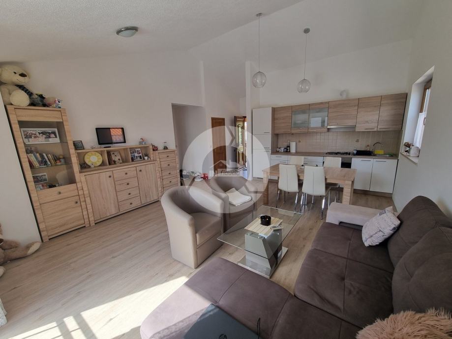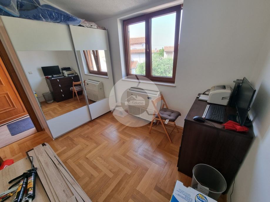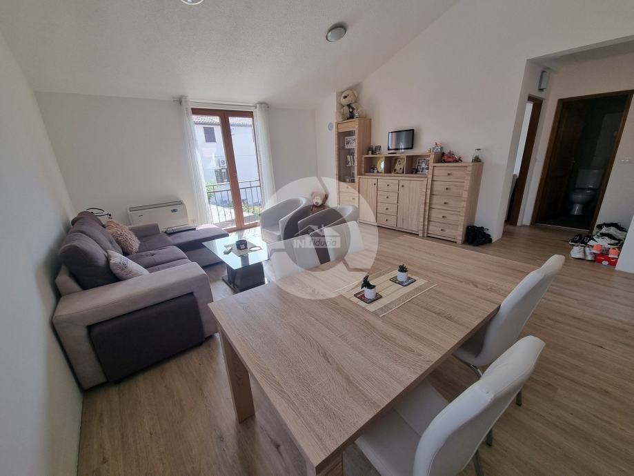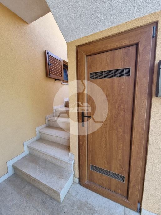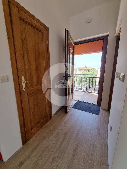 Stan se nalazi u centru mjesta u kući (zgradi) na 1. katu, od ukupno samo dva stana. Sastoji se od ulaznog hodnika, dvije spavaće sobe, blagovaone, kuhinje, dnevnog boravka, kupaone i jednog prostora koji može biti wc ili spremište. Stanu pripada mala terasa na sjevernoj strani, te stubište ispod kojeg se nalazi spremište za taj stan. Stan se prodaje kompletno namješten! Stan ima dimnjak a grijanje i hlađenje je regulirano putem klimatskih jedinica. Obzirom na veliku potražnju za najam, stan je odličan potencijal za takvu investiciju, no odličan je i za obitelj budući da se nalazi blizu vrtića, škole, trgovina i ostalih sadržaja. Udaljenost od mora: 3 km.