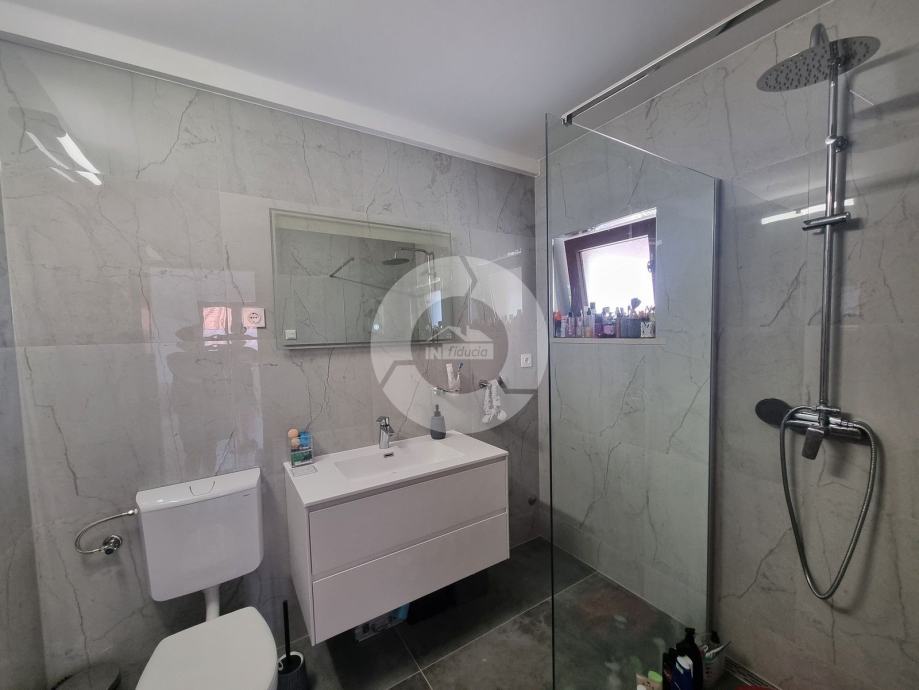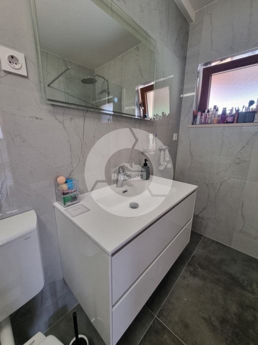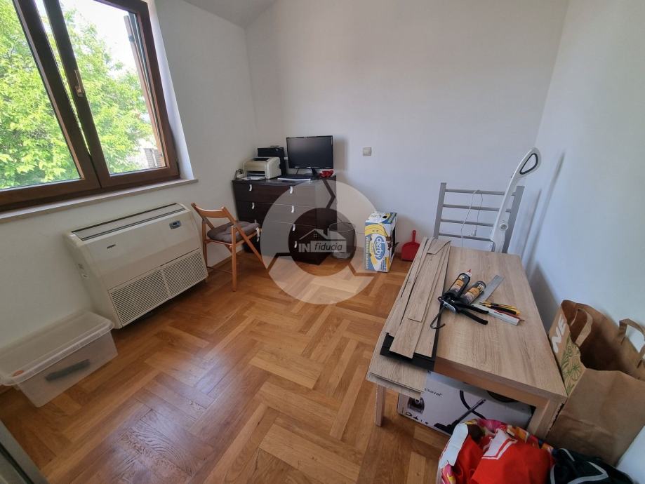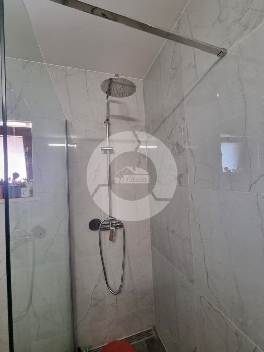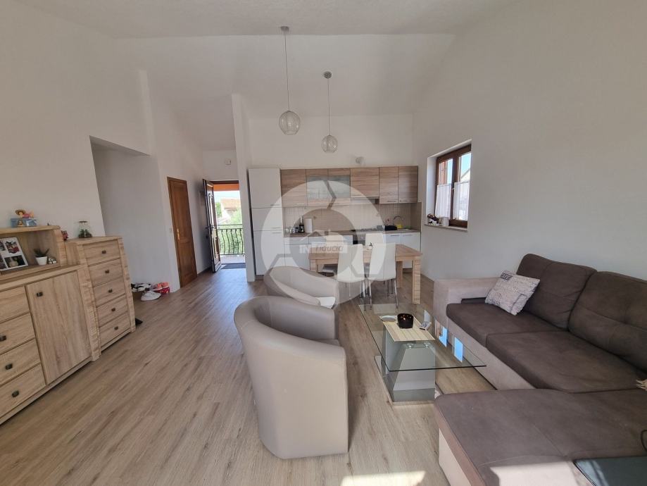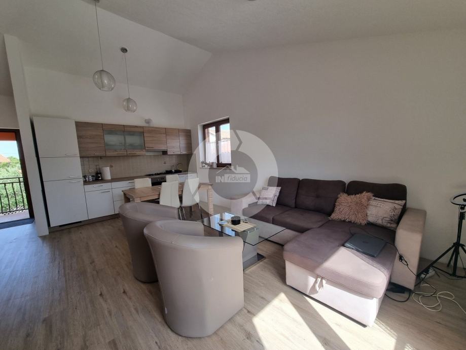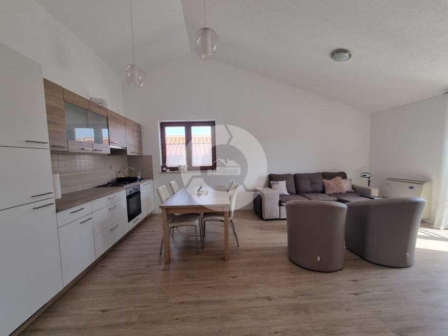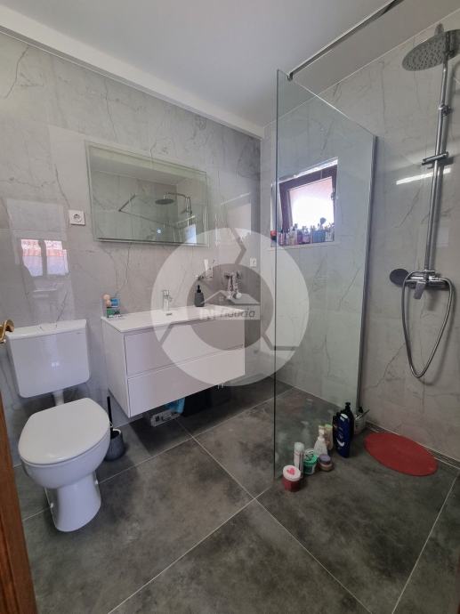 Stan se nalazi u centru mjesta u kući (zgradi) na 1. katu, od ukupno samo dva stana. Sastoji se od ulaznog hodnika, dvije spavaće sobe, blagovaone, kuhinje, dnevnog boravka, kupaone i jednog prostora koji može biti wc ili spremište. Stanu pripada mala terasa na sjevernoj strani, te stubište ispod kojeg se nalazi spremište za taj stan. Stan se prodaje kompletno namješten! Stan ima dimnjak a grijanje i hlađenje je regulirano putem klimatskih jedinica. Obzirom na veliku potražnju za najam, stan je odličan potencijal za takvu investiciju, no odličan je i za obitelj budući da se nalazi blizu vrtića, škole, trgovina i ostalih sadržaja. Udaljenost od mora: 3 km.