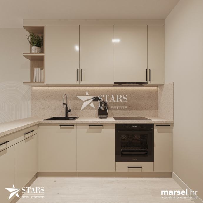 Jednosoban stan funkcionalnog rasporeda na drugom katu. Puno prirodnog svjetla i kvalitetni materijali čine ovaj stan idealnim izborom za stanovanje ili sigurnu investiciju.