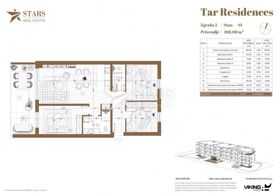 U prizemlju prve zgrade projekta Tar Residences smješten je ovaj iznimno atraktivan dvosobni stan s dnevnim boravkom, idealan za kvalitetan obiteljski život, odmor ili dugoročnu investiciju.