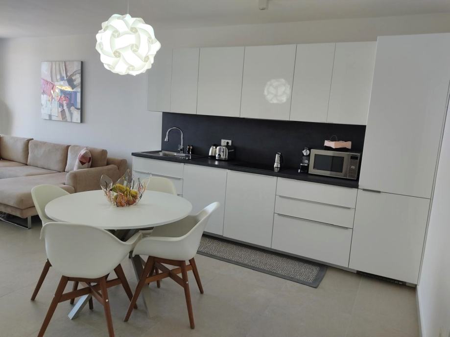 Iznajmljuje se nov, moderno uređen stan površine 48,20 m² s dodatnih 8,7 m² terase, smješten u samom centru Tara. Stan se nalazi na 2. katu zgrade te nudi prekrasan panoramski pogled na more. Stan se sastoji od ulaznog predprostora, kuhinje s blagovaonicom i dnevnim boravkom, spavaće sobe, kupaonice te prostrane terase, idealne za opuštanje i uživanje u pogledu na more. Grijanje i hlađenje osigurano je putem klima uređaja, dok je u kupaonici postavljeno električno podno grijanje. Stan je nov, uredan i izuzetno ugodan za stanovanje, namijenjen dugoročnom najmu. Iznajmljuje se najmanje na godinu dana, isključivo ozbiljnom i urednom paru. Cijena najma: 1.200 EUR + režije.