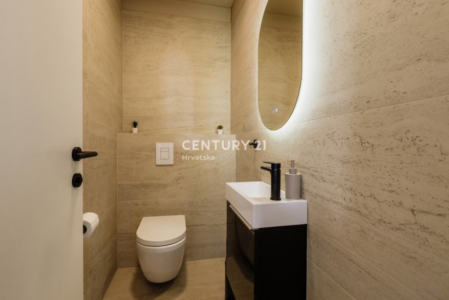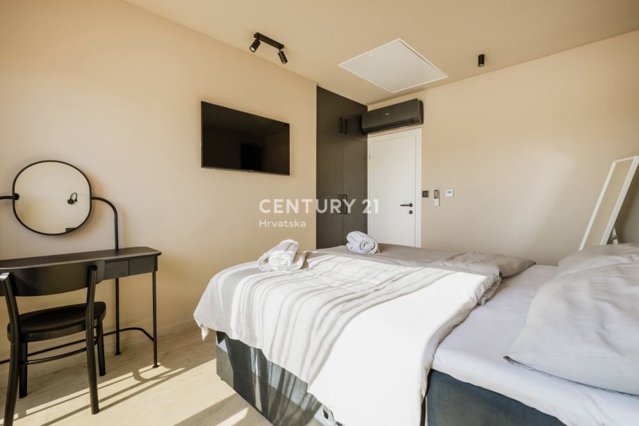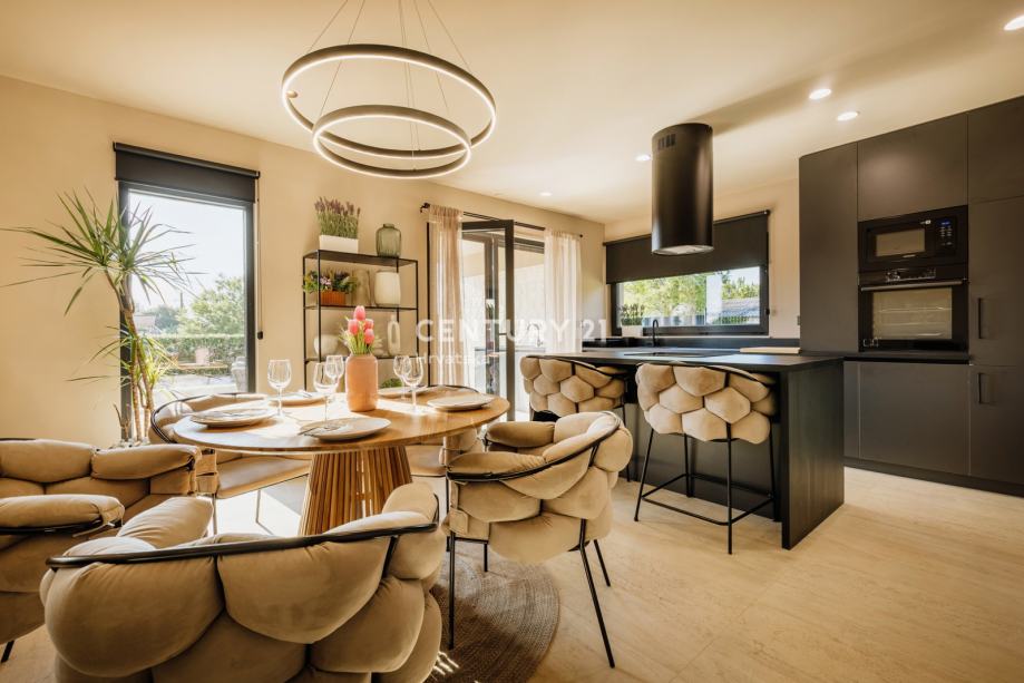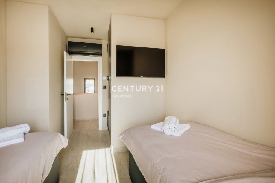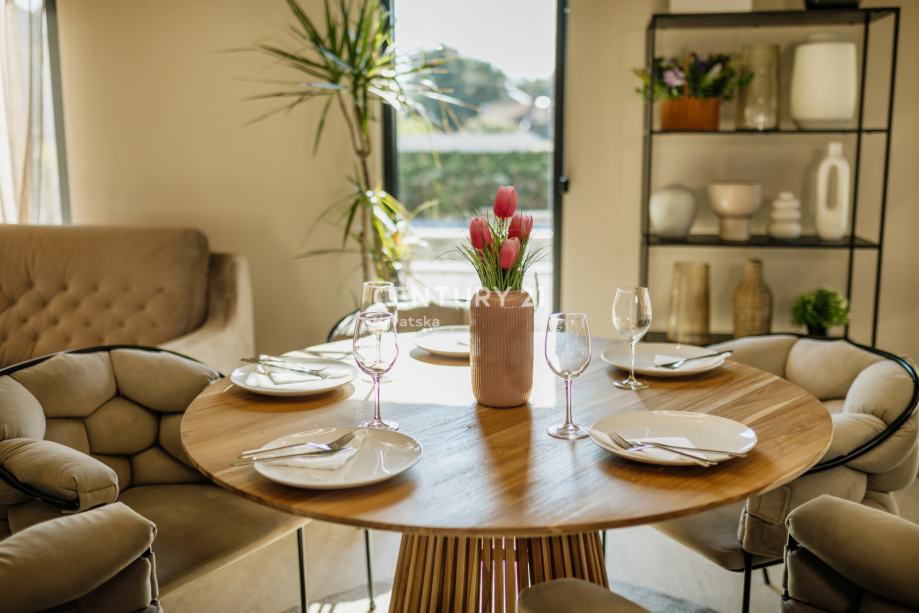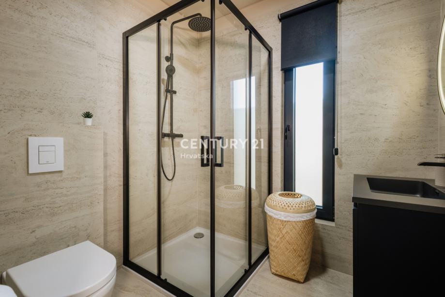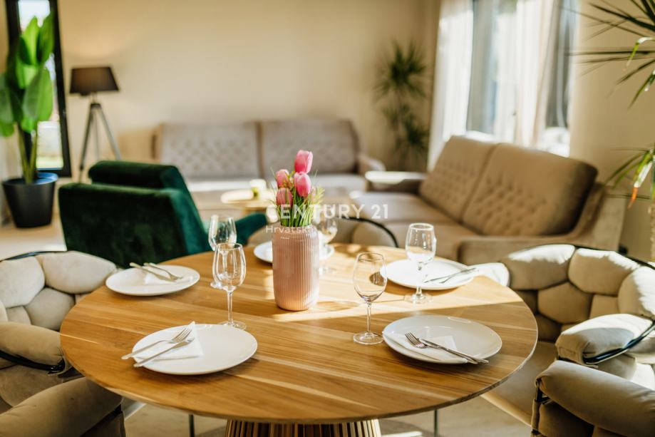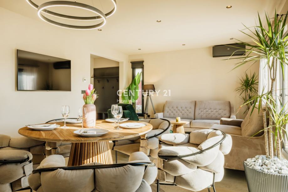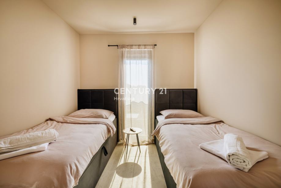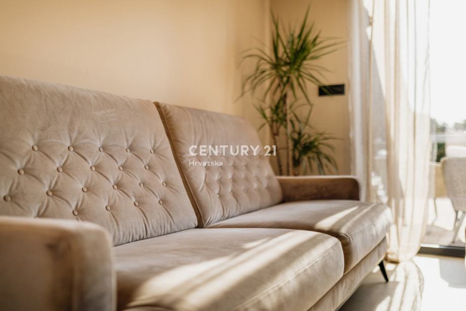 Prodaje se kompletno opremljena namještajem, Ukupno sa terasama i bazenom ima 170 m2, na zemljištu od 540 m2.