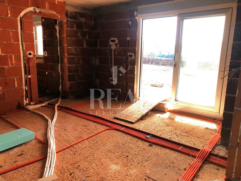 Od opreme izdvajamo PVC stolariju renomiranog proizvođača sa troslojnim staklom i roletama na struju, termo fasadu, podno grijanje, multi split klima uređaj sa jednom vanjskom i tri unutarnje jedinice i dr.