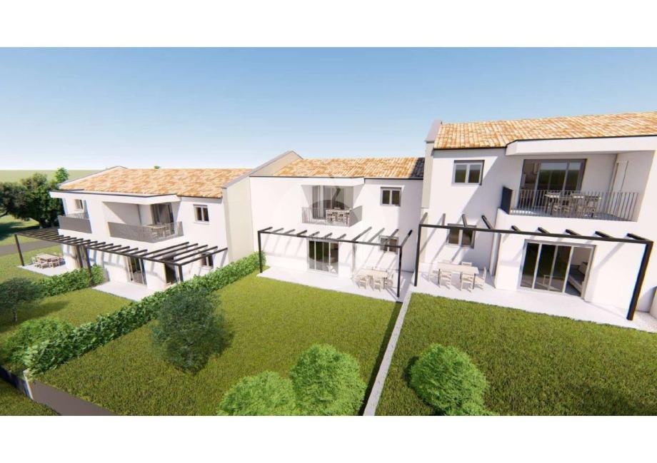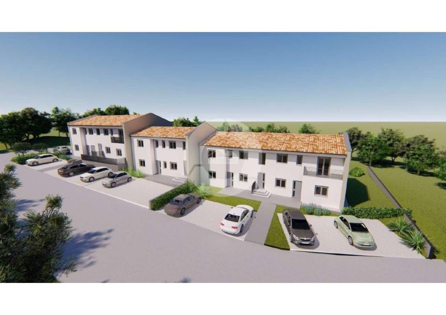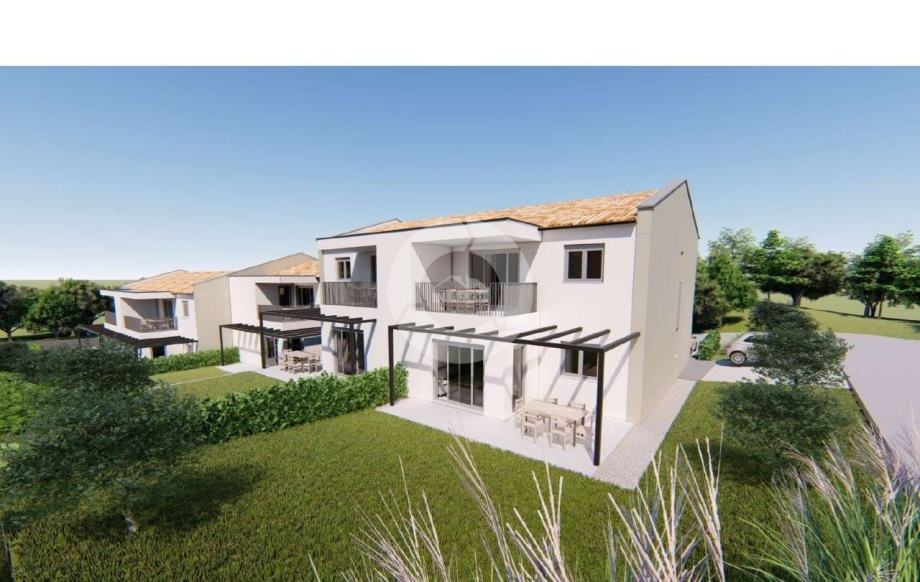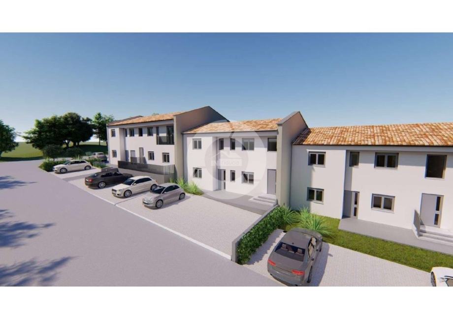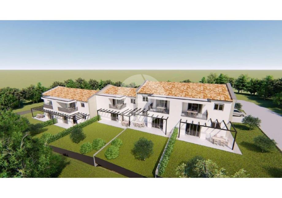 Vlastiti ulaz samo za taj stan; sastoji se od hodnika, Wc-a, kuhinje, blagovaonice i dnevnog boravka sa izlazom na terasu sa pergolom, te dvorišta od 75 m2. Ima tri spavaće sobe i kupaonicu. Također mu pripada spremište i 2 parkirna mjesta.