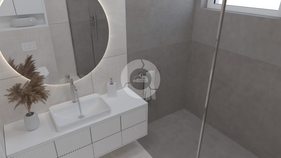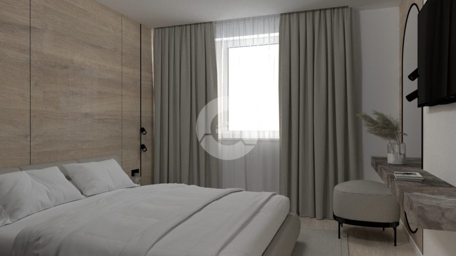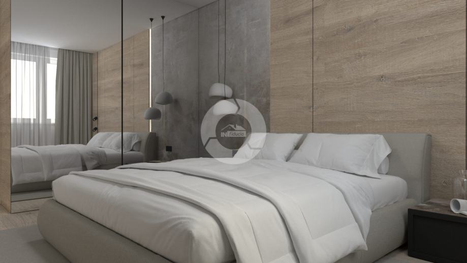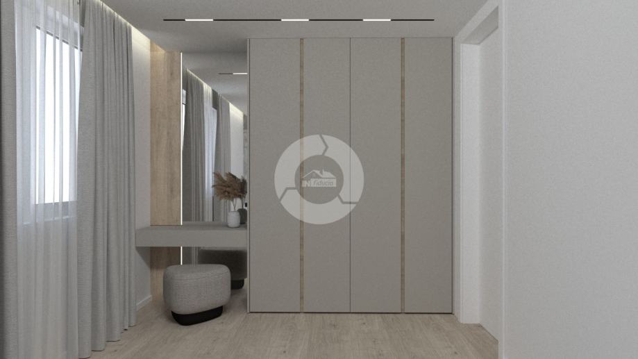 Stan se sastoji od dvije kupaonice, tri spavaće sobe, garderobe i terase.