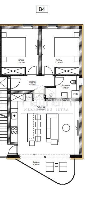 Tar, dvosoban stan u novogradnji od 78 m2 na samo 2 km od mora, sa krovnom terasom.