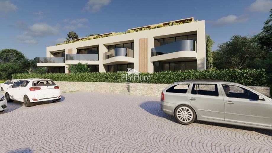 Svakom stanu pripada i 2 parkirna mjesta, te stanovi u prizemlju imaju i vrt a stanovi na katu krovnu terasu sa prekrasnim pogledom na more i Poreč.